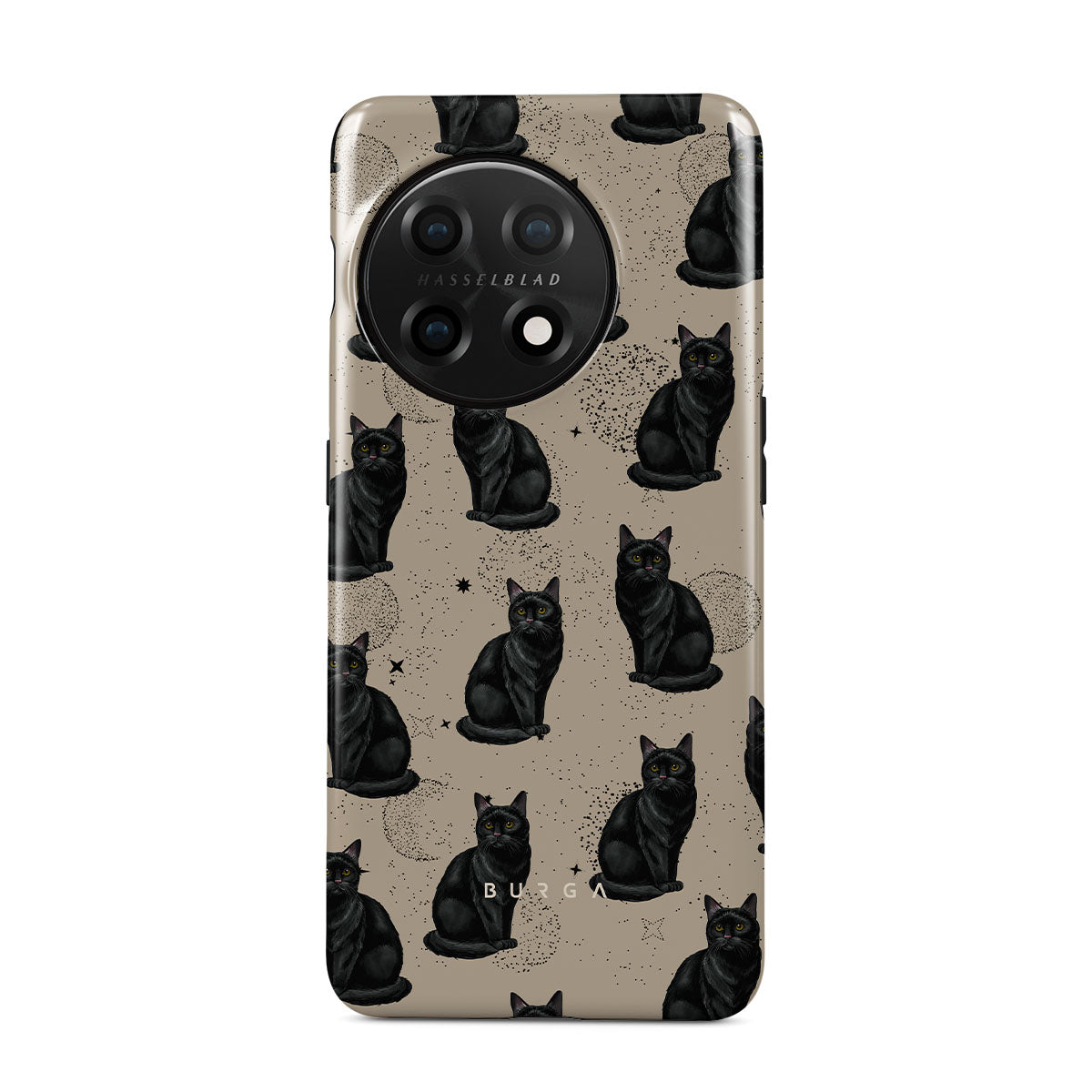 このデザインの特徴:黒猫、神秘主義の記号。