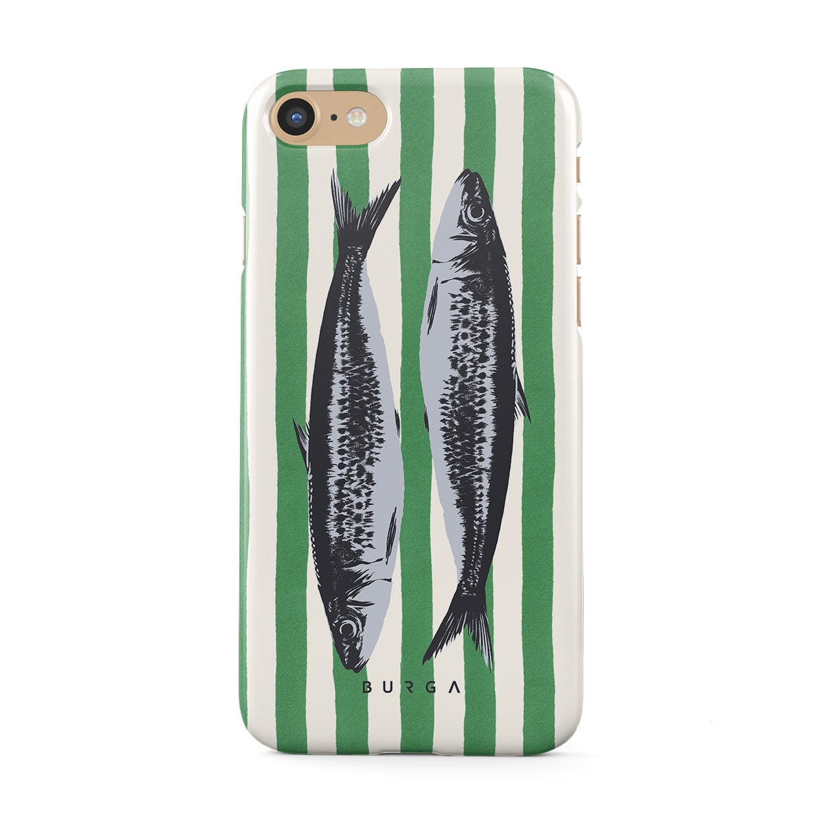 このデザインの特徴サーディン、緑のストライプ、海のモチーフが含まれています