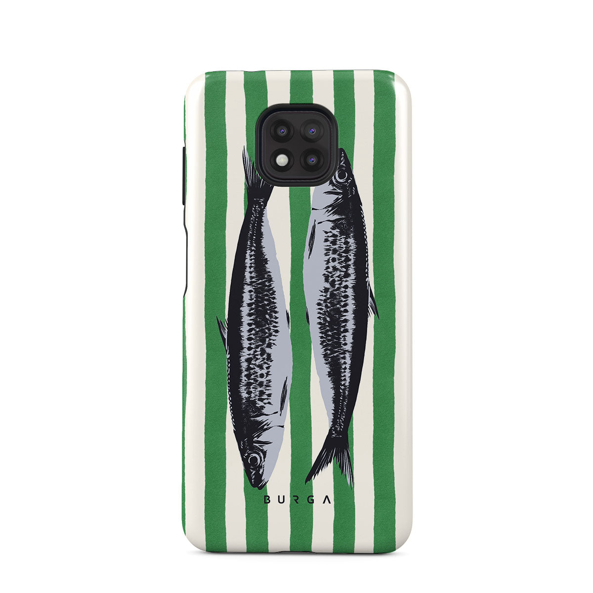 このデザインの特徴サーディン、緑のストライプ、海のモチーフが含まれています