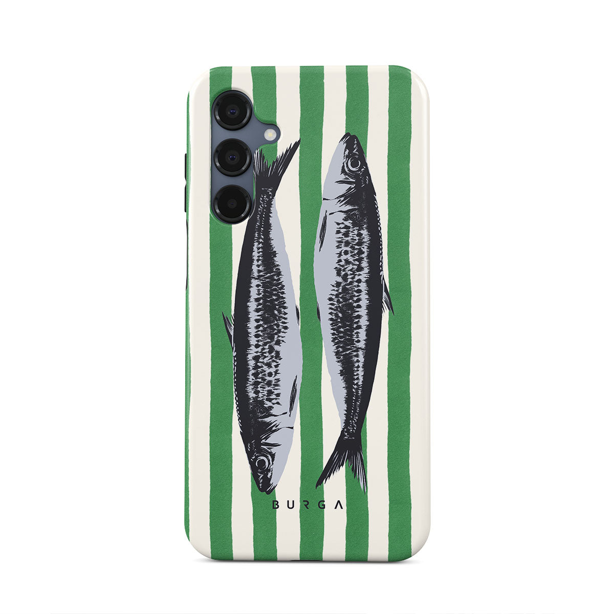 このデザインの特徴サーディン、緑のストライプ、海のモチーフが含まれています