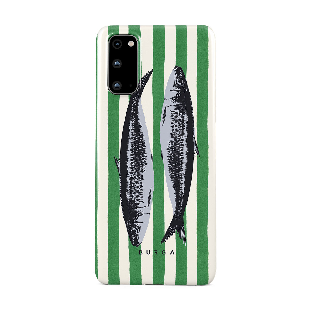 このデザインの特徴サーディン、緑のストライプ、海のモチーフが含まれています