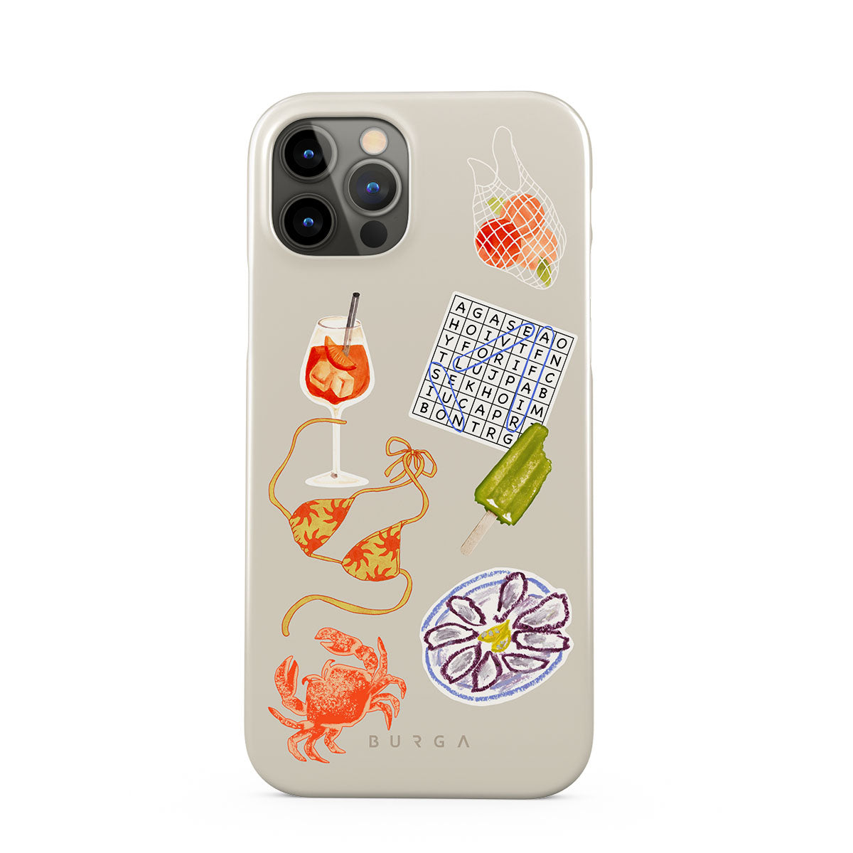 このデザインの特徴:、カニ、オイスターのプレート、アイスキャンディー、クロスワードパズル、スプリッツカクテル、ビキニトップ、フルーツが含まれています。