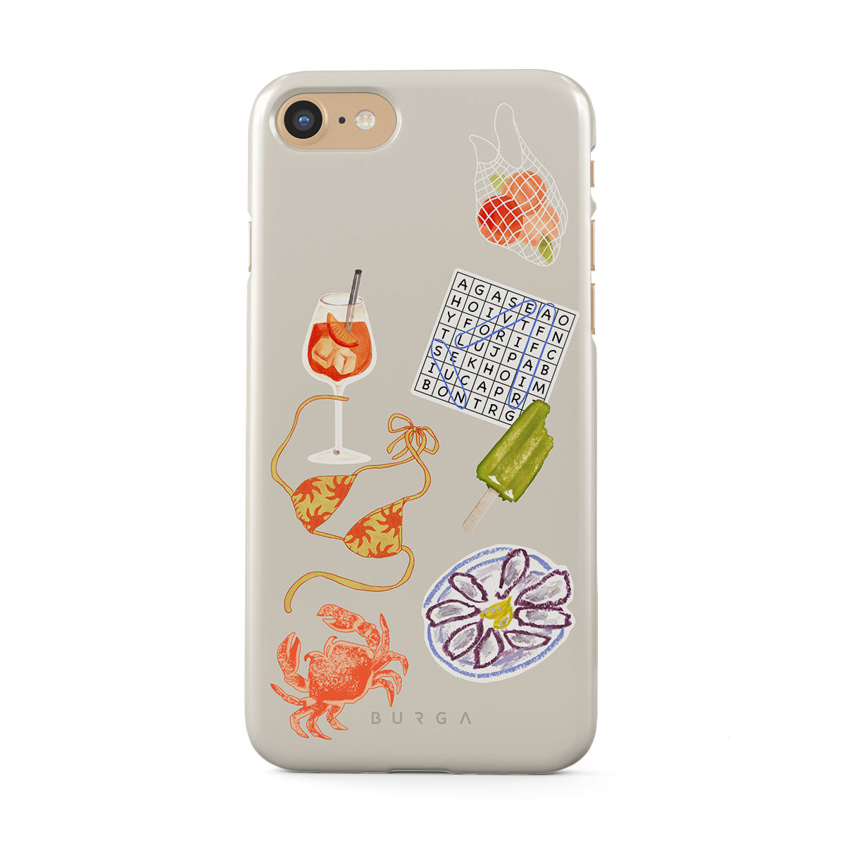 このデザインの特徴:、カニ、オイスターのプレート、アイスキャンディー、クロスワードパズル、スプリッツカクテル、ビキニトップ、フルーツが含まれています。