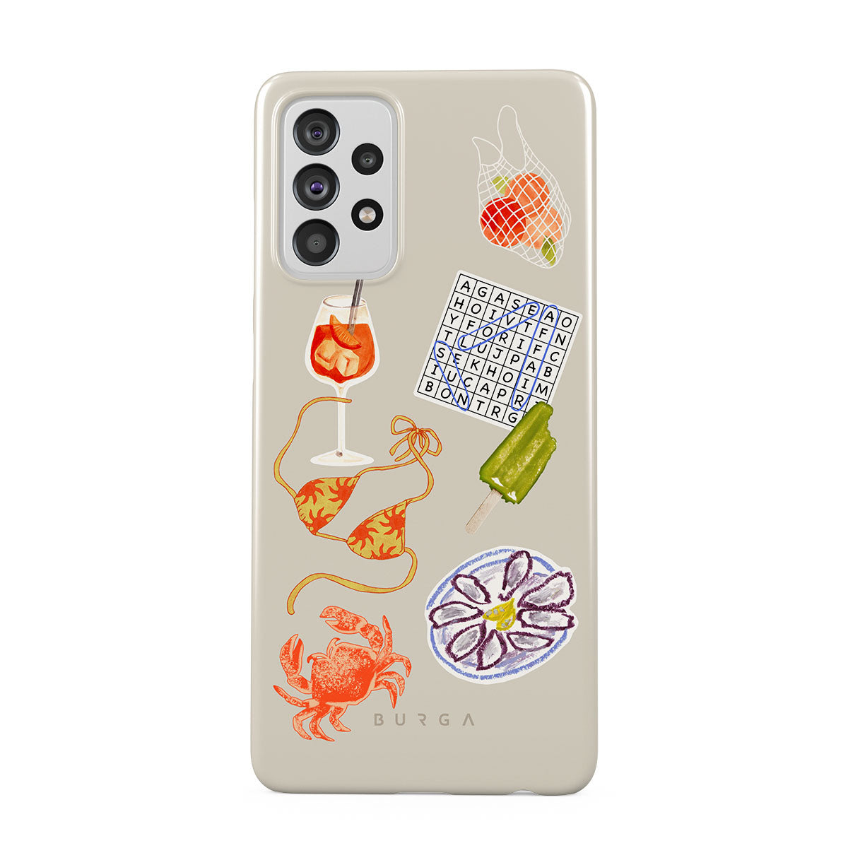 このデザインの特徴:、カニ、オイスターのプレート、アイスキャンディー、クロスワードパズル、スプリッツカクテル、ビキニトップ、フルーツが含まれています。