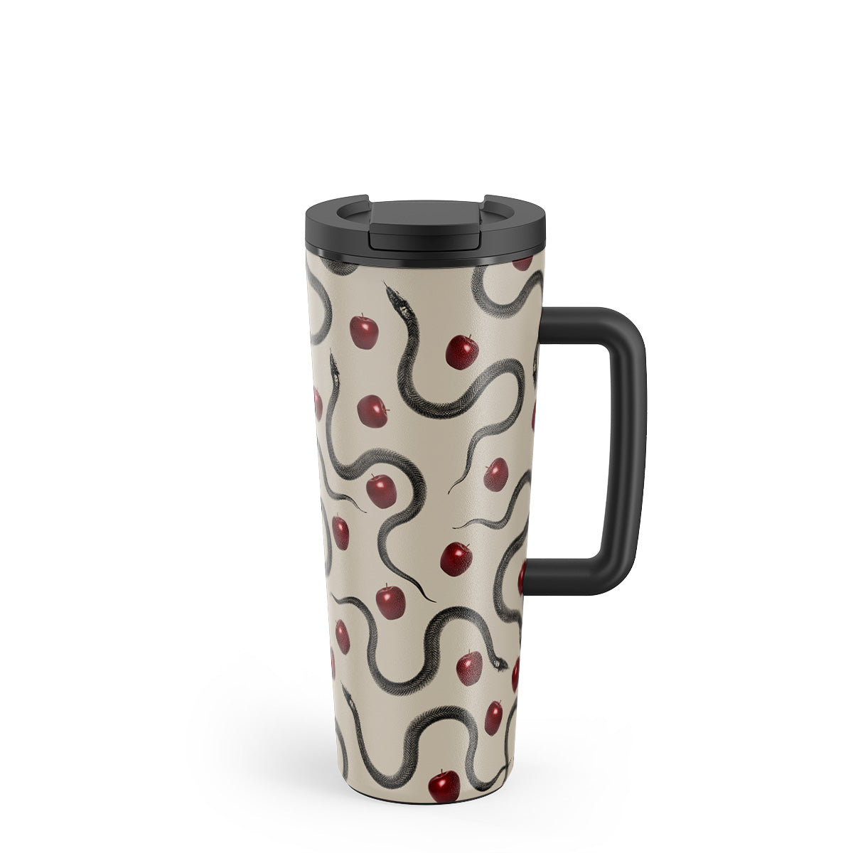 このデザインの特徴は、ツヤツヤの真っ赤なリンゴ、巻きつくヘビ、ベージュの色調。