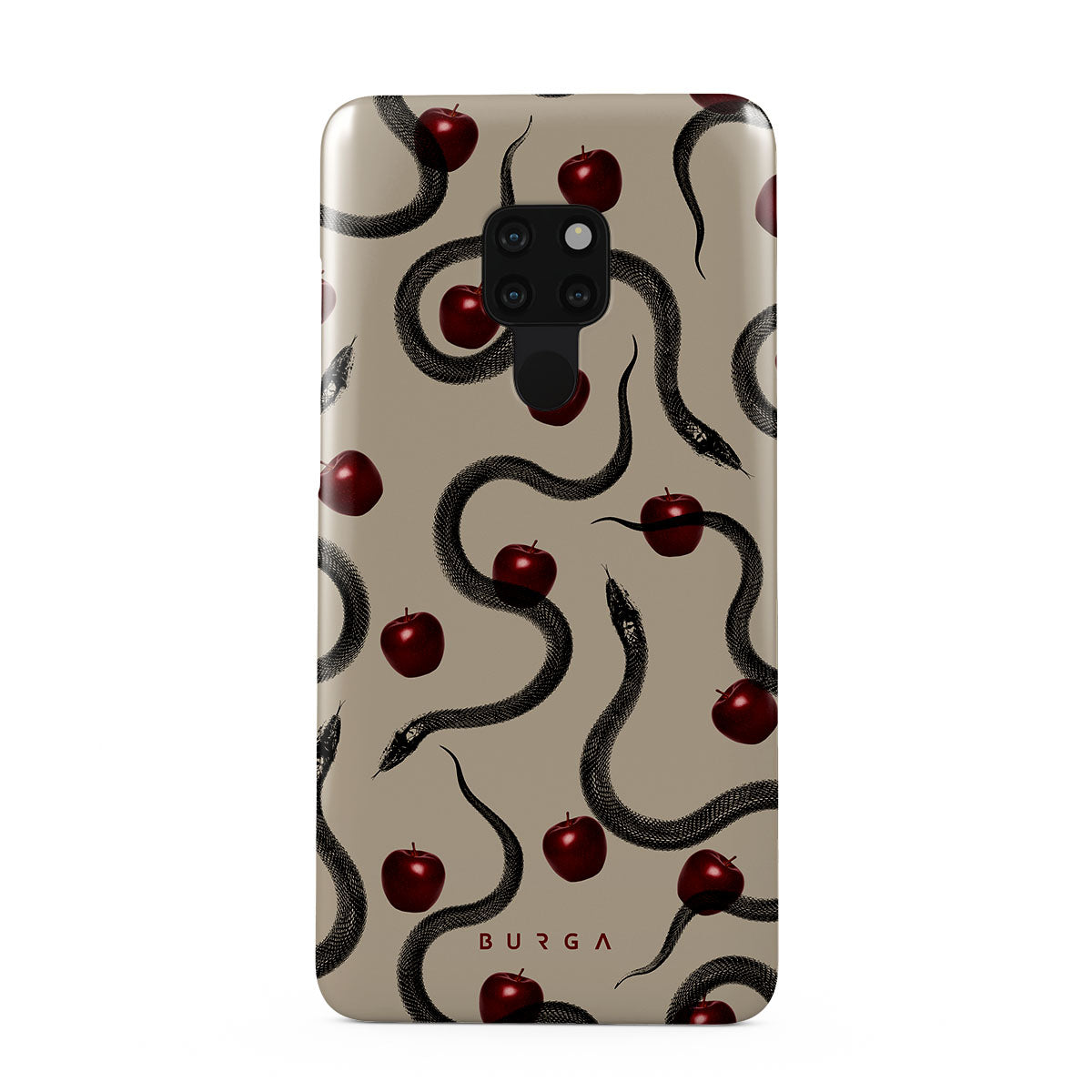 このデザインの特徴は、ツヤツヤの真っ赤なリンゴ、巻きつくヘビ、ベージュの色調。