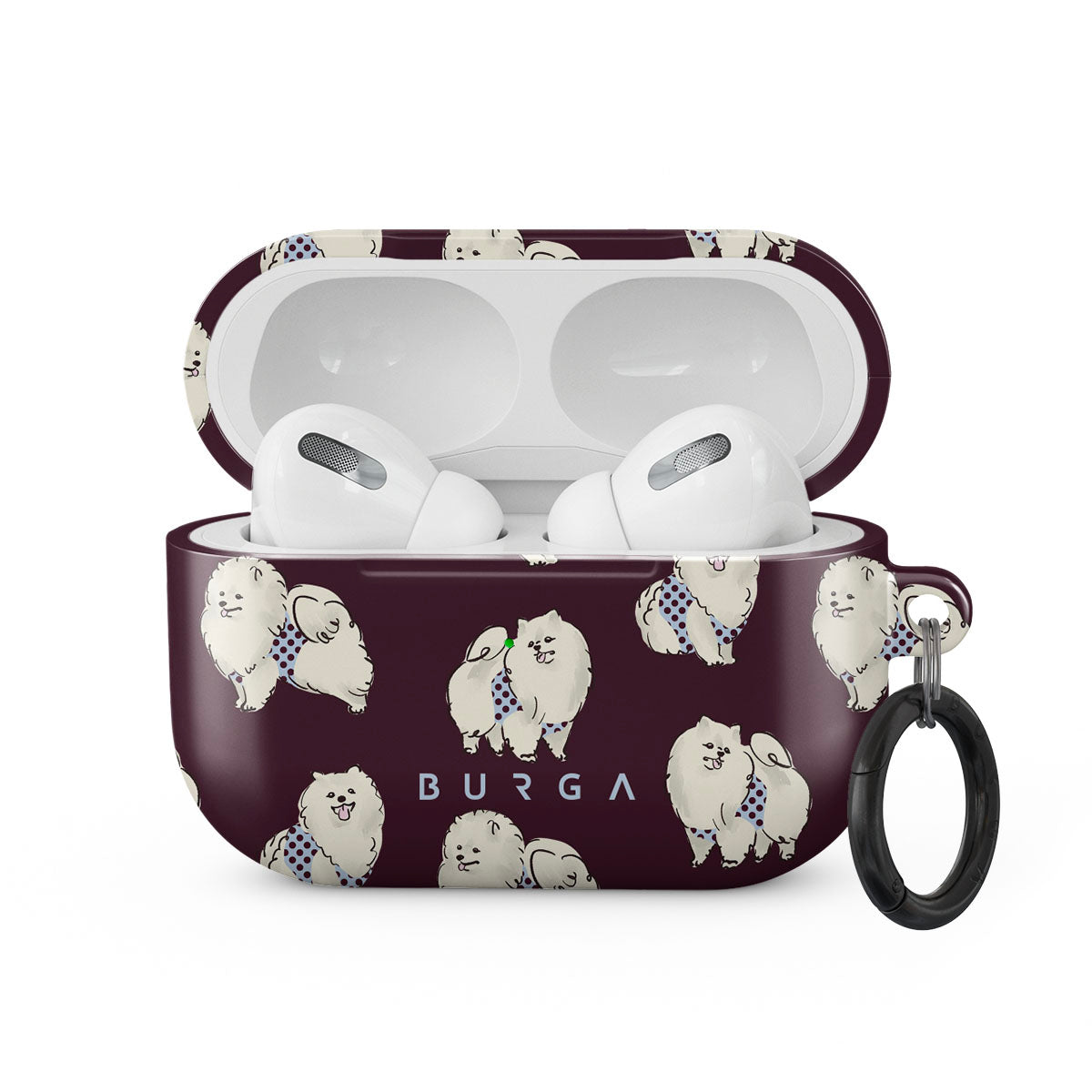 このデザインの特徴:深いバーガンディ色の背景に白くてふわふわの犬(プードル)が描かれており、ペット好きにぴったりです。