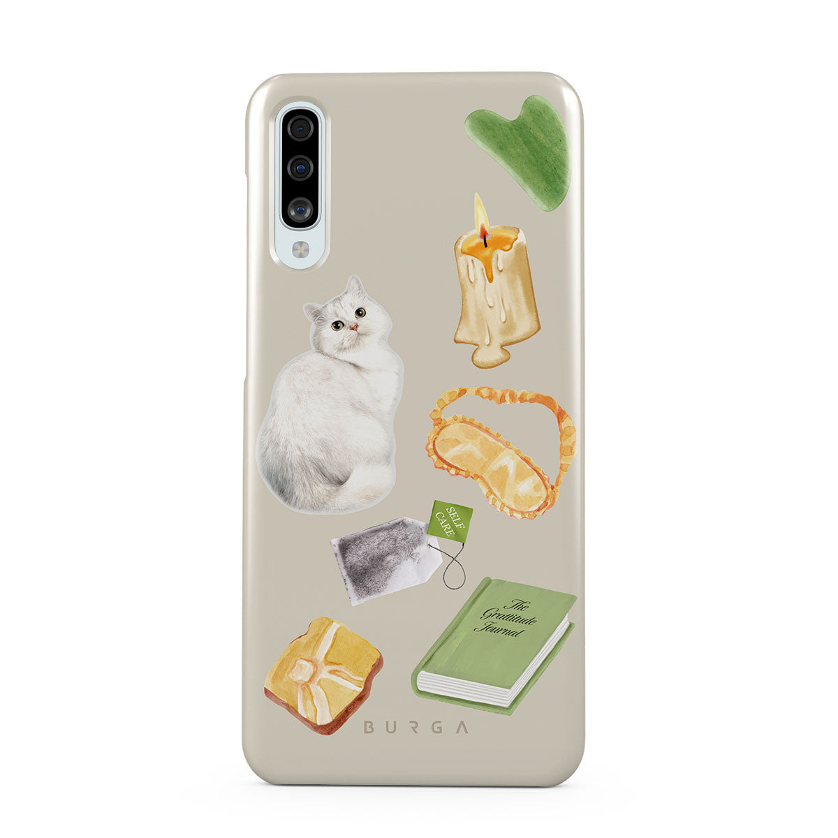 このデザインの特徴:、白い猫、緑の本、キャンドル、グアシャバー、アイマスク、ティーバッグ、黄色のクリスタルが含まれています。