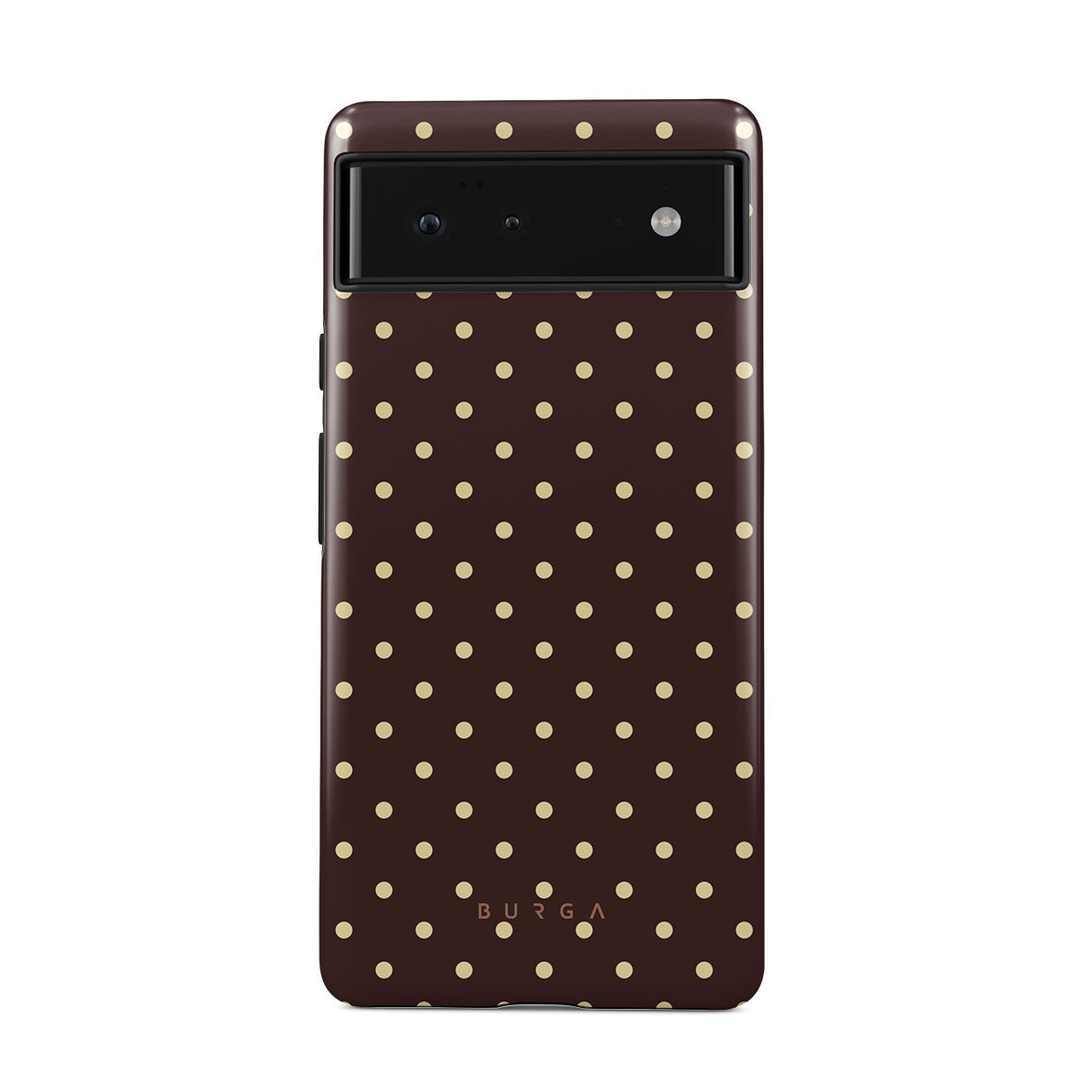 このデザインの特徴:茶色の背景、ベージュの水玉模様
