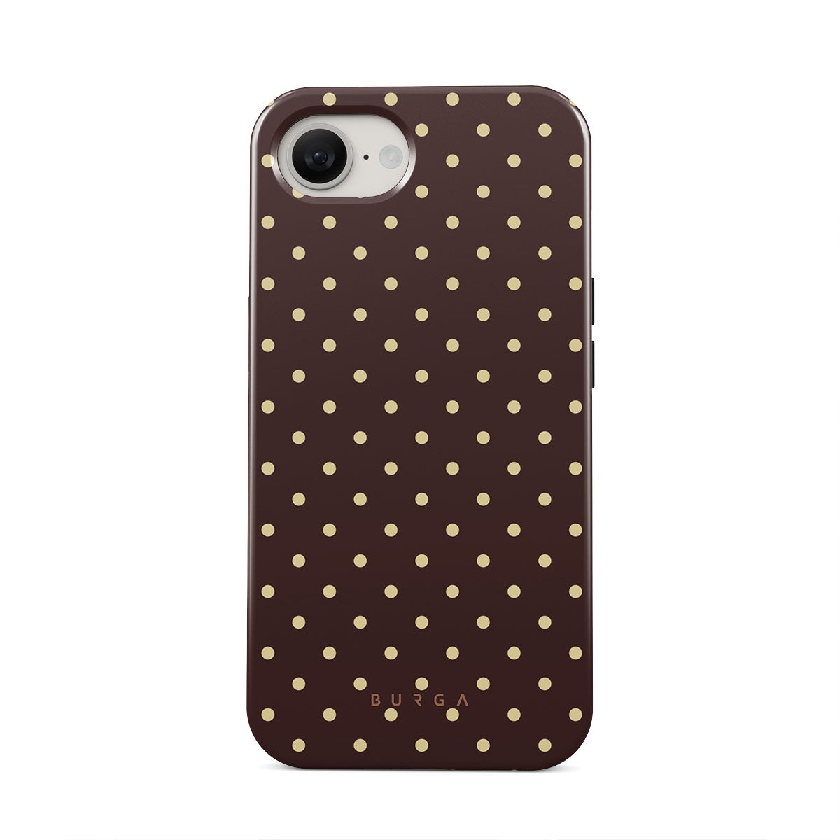 このデザインの特徴:茶色の背景、ベージュの水玉模様