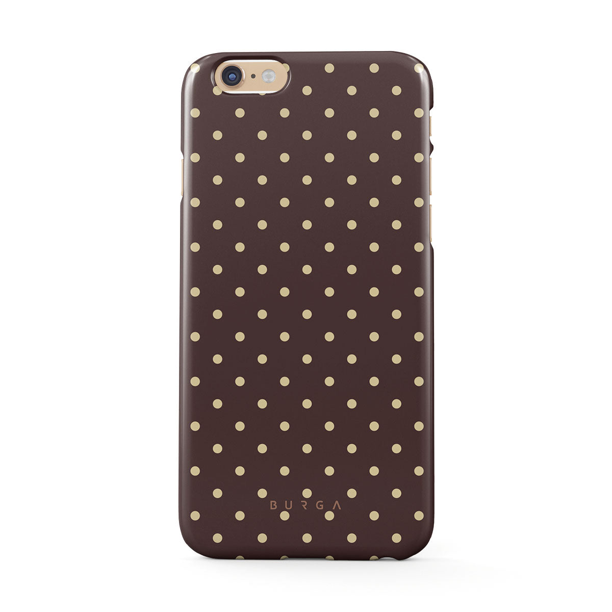 このデザインの特徴:茶色の背景、ベージュの水玉模様