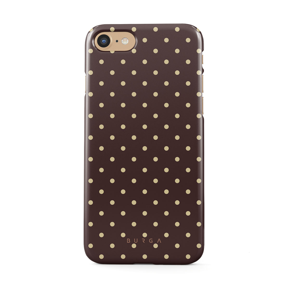 このデザインの特徴:茶色の背景、ベージュの水玉模様