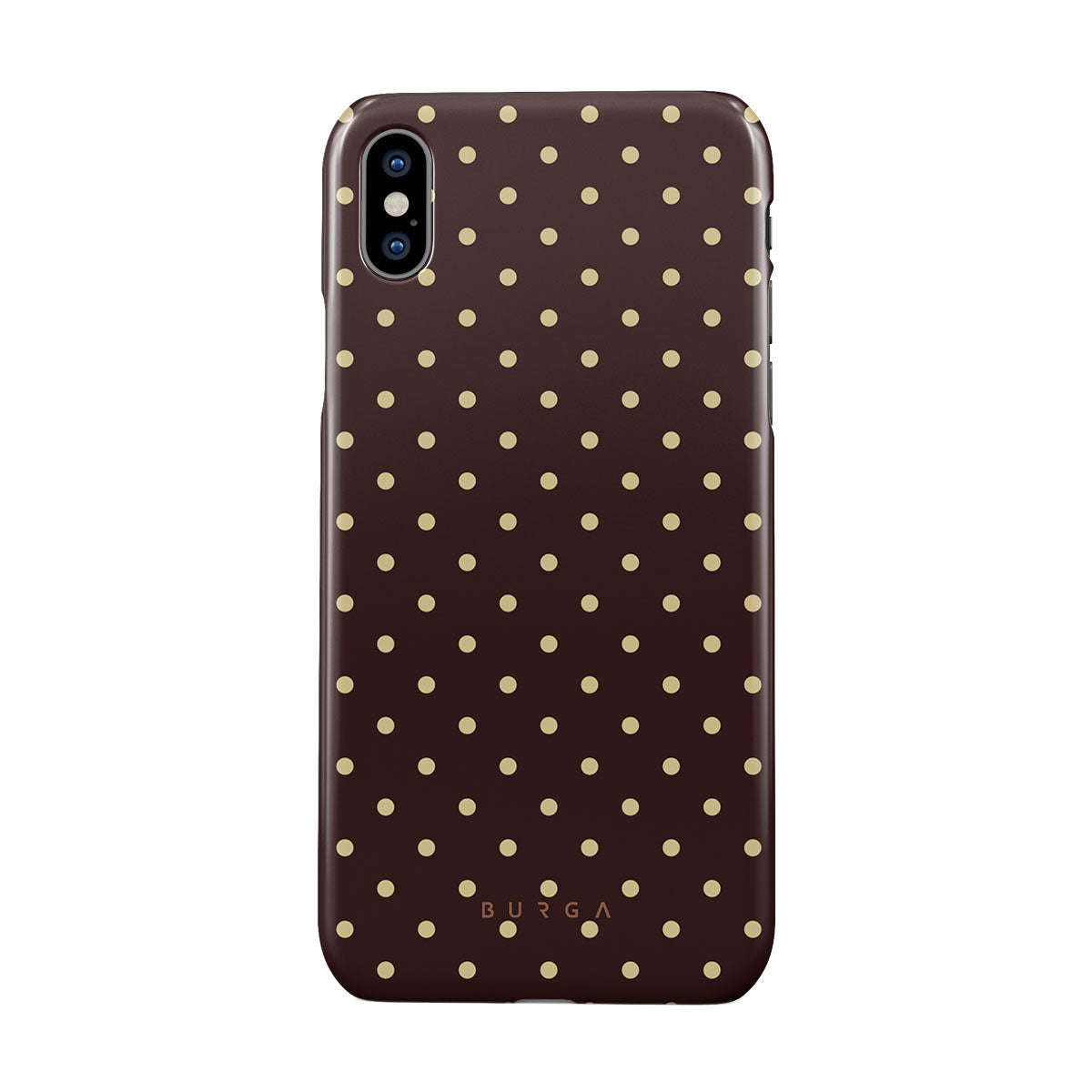このデザインの特徴:茶色の背景、ベージュの水玉模様