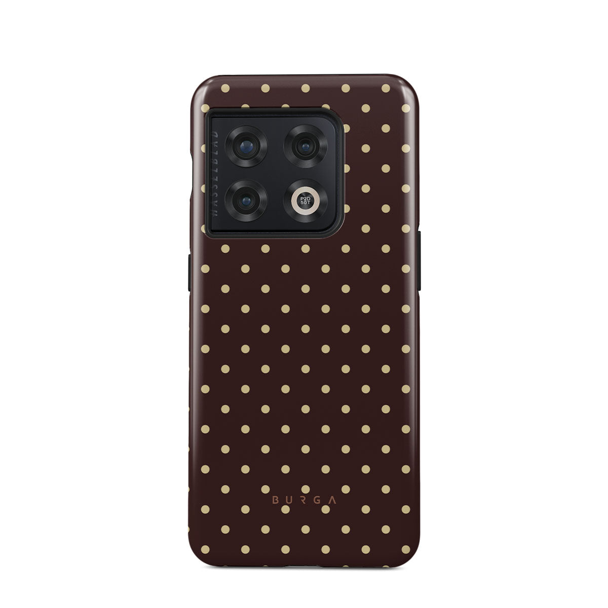 このデザインの特徴:茶色の背景、ベージュの水玉模様