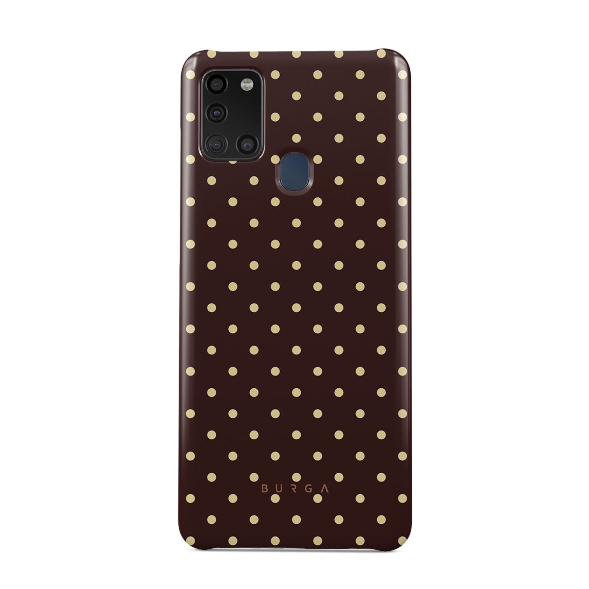 このデザインの特徴:茶色の背景、ベージュの水玉模様