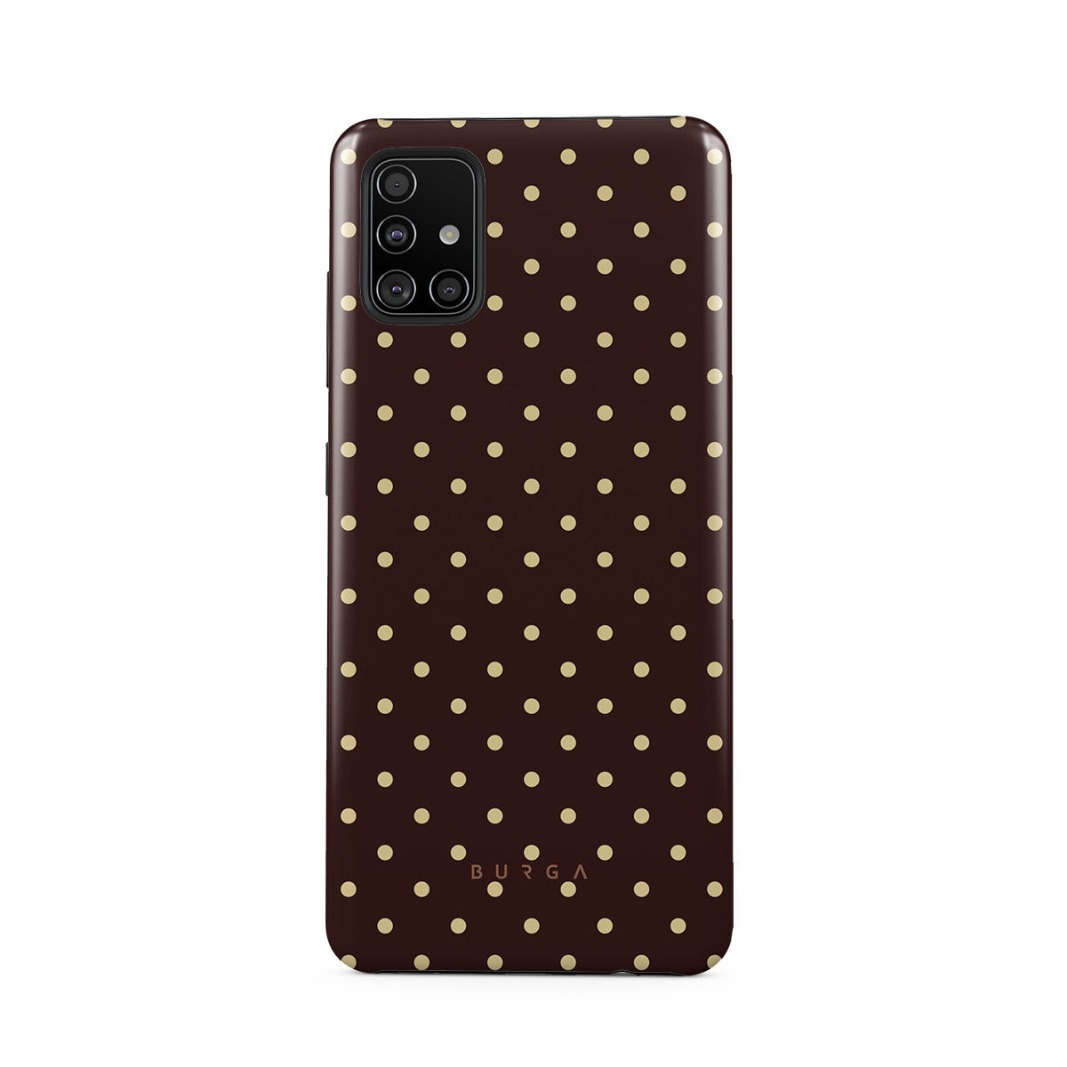 このデザインの特徴:茶色の背景、ベージュの水玉模様