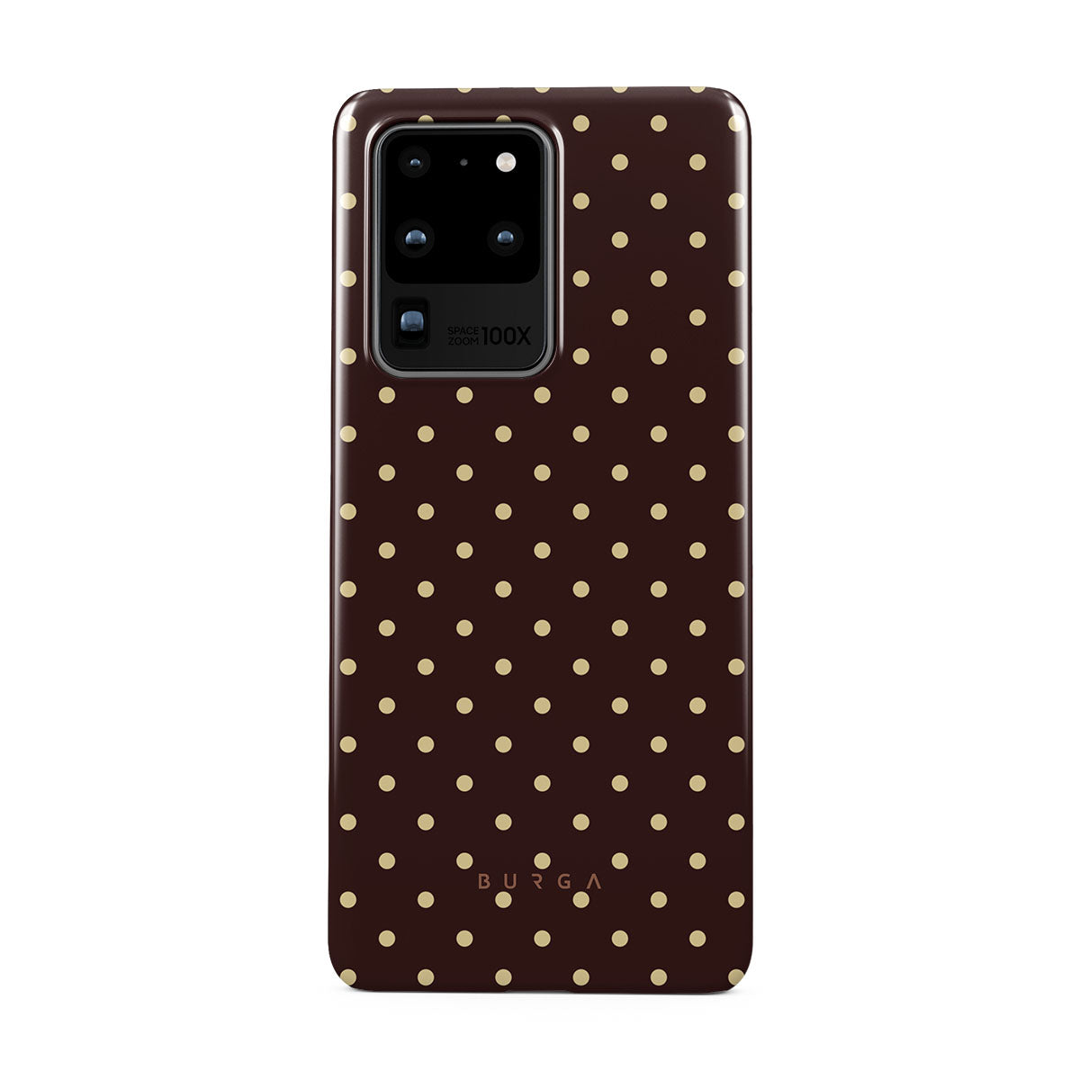 このデザインの特徴:茶色の背景、ベージュの水玉模様