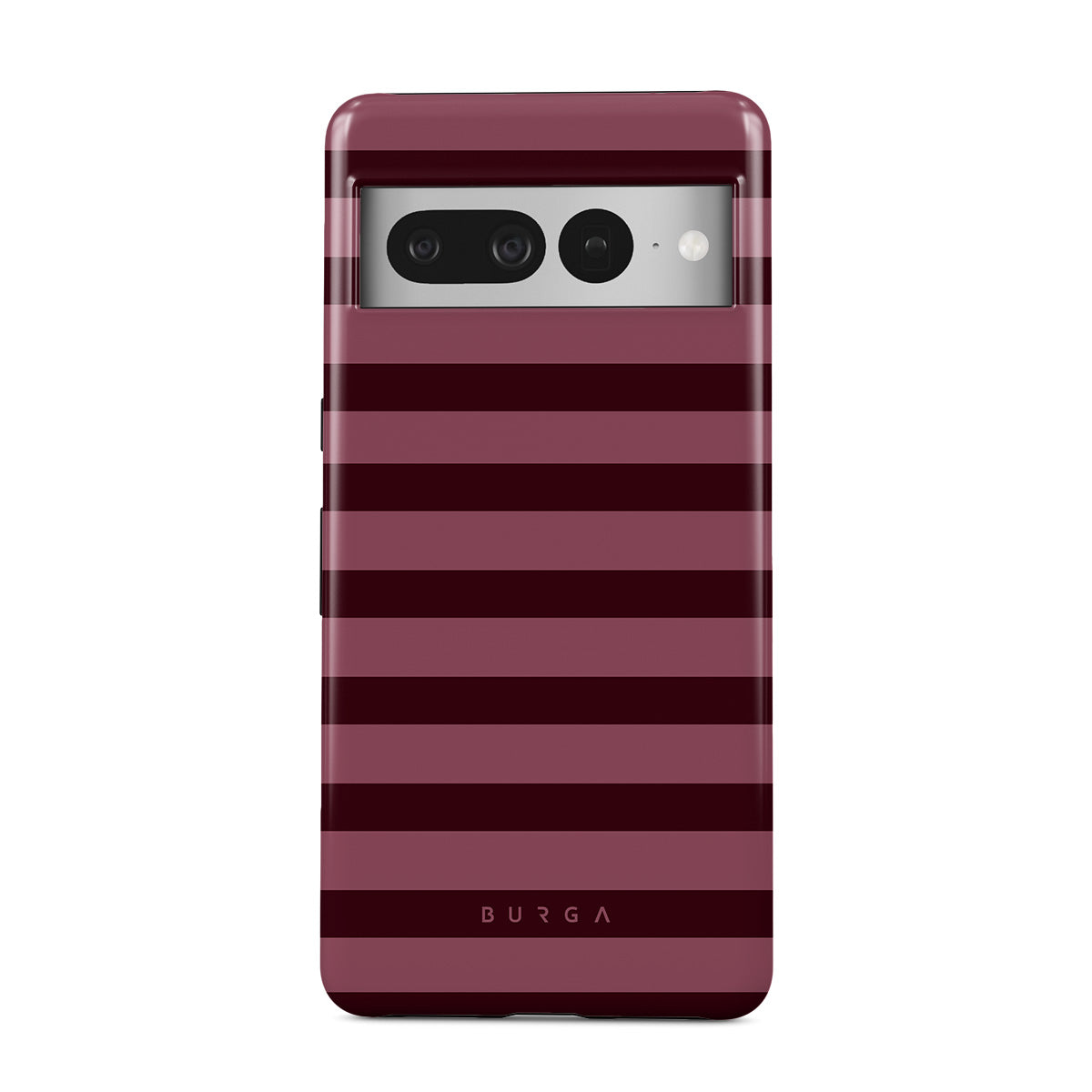 このデザインの特徴:ヴィンテージのバーガンディとピンクの横縞模様