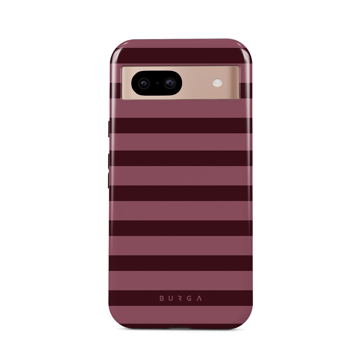 このデザインの特徴:ヴィンテージのバーガンディとピンクの横縞模様