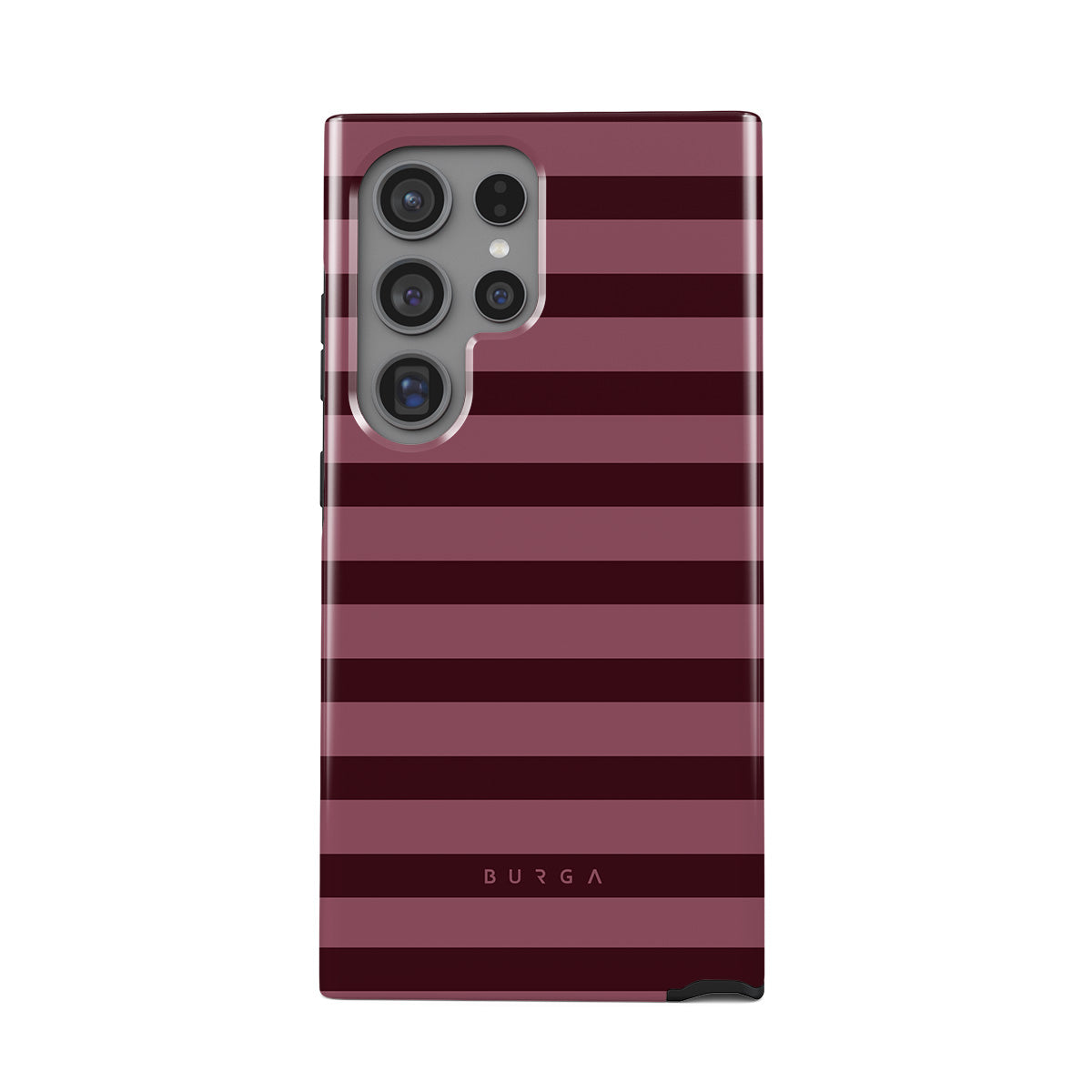 このデザインの特徴:ヴィンテージのバーガンディとピンクの横縞模様