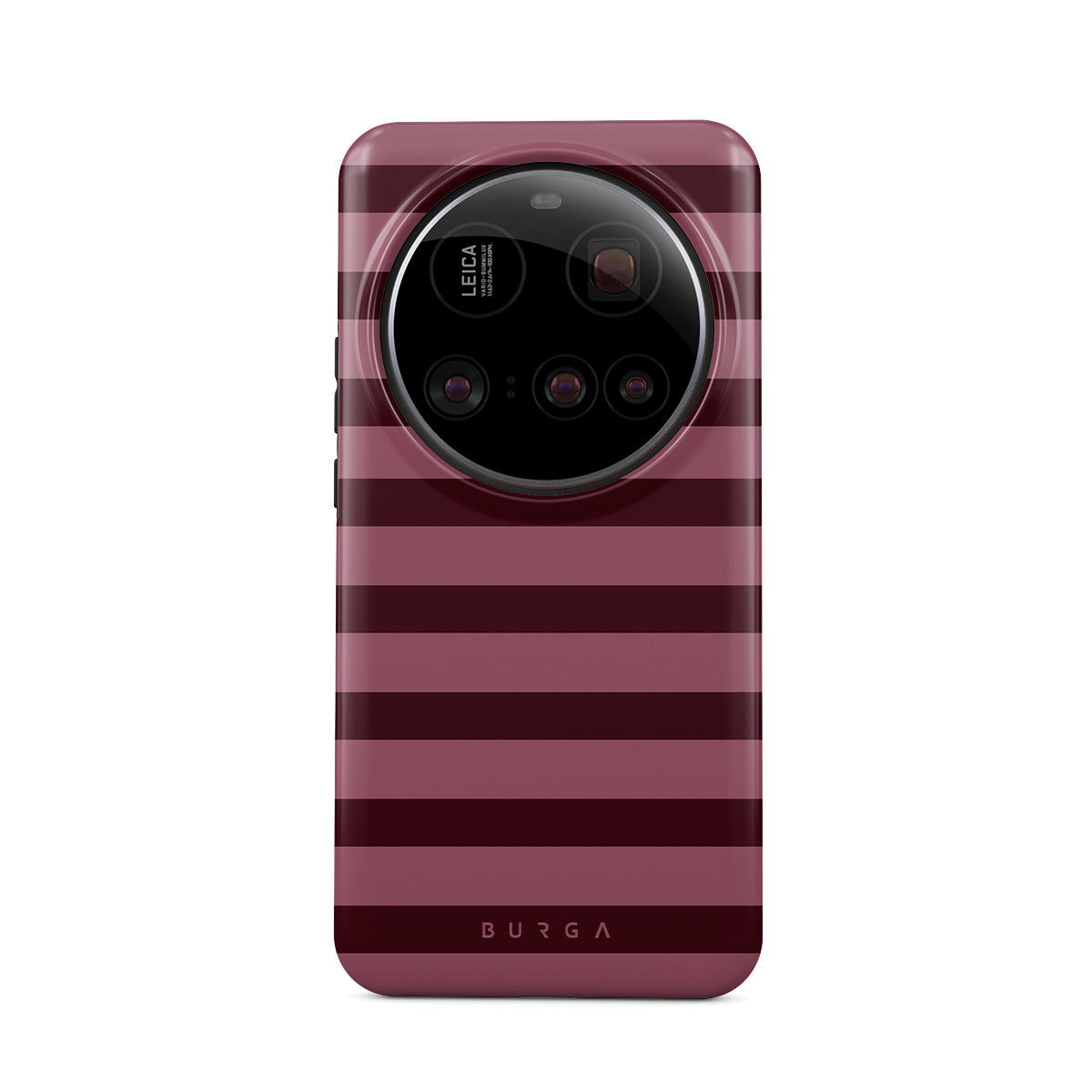 このデザインの特徴:ヴィンテージのバーガンディとピンクの横縞模様