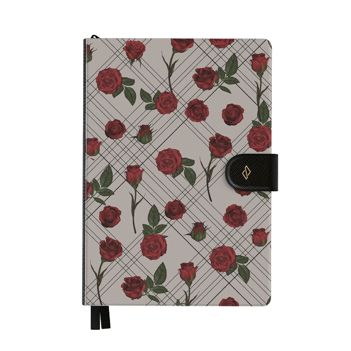 日付が書かれていないミニマリストなデザインで、手帳・スケジュール帳・ダイアリーとして使えます。表紙のハードカバーには、心地よい手触りのヴィーガンサフィアーノレザーを使用。スリムな磁気べえると付きの頑丈な手帳で、コーヒーをこぼしたり、うっかり手帳を落としたりしても安心です。
