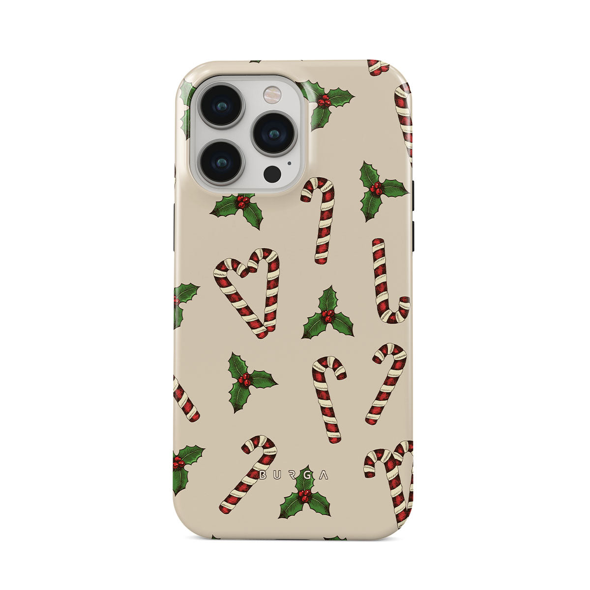 デザインの特徴:クリスマスキャンディ、クリスマスホーリー、グリーン、ホワイト、クリスマス柄
