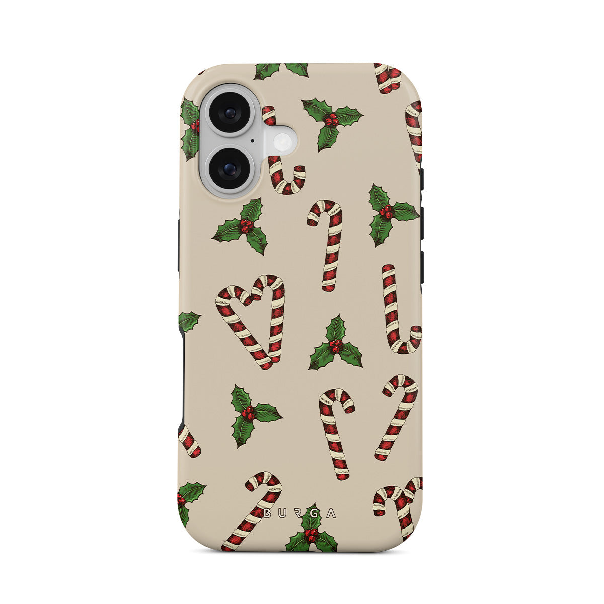 デザインの特徴:クリスマスキャンディ、クリスマスホーリー、グリーン、ホワイト、クリスマス柄