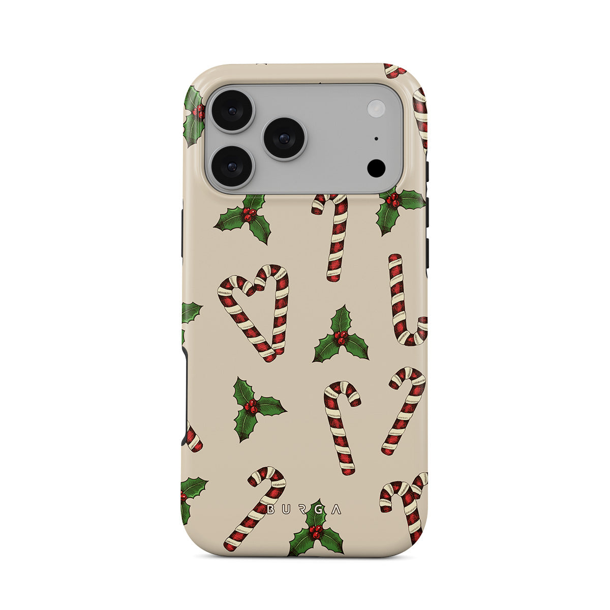 デザインの特徴:クリスマスキャンディ、クリスマスホーリー、グリーン、ホワイト、クリスマス柄