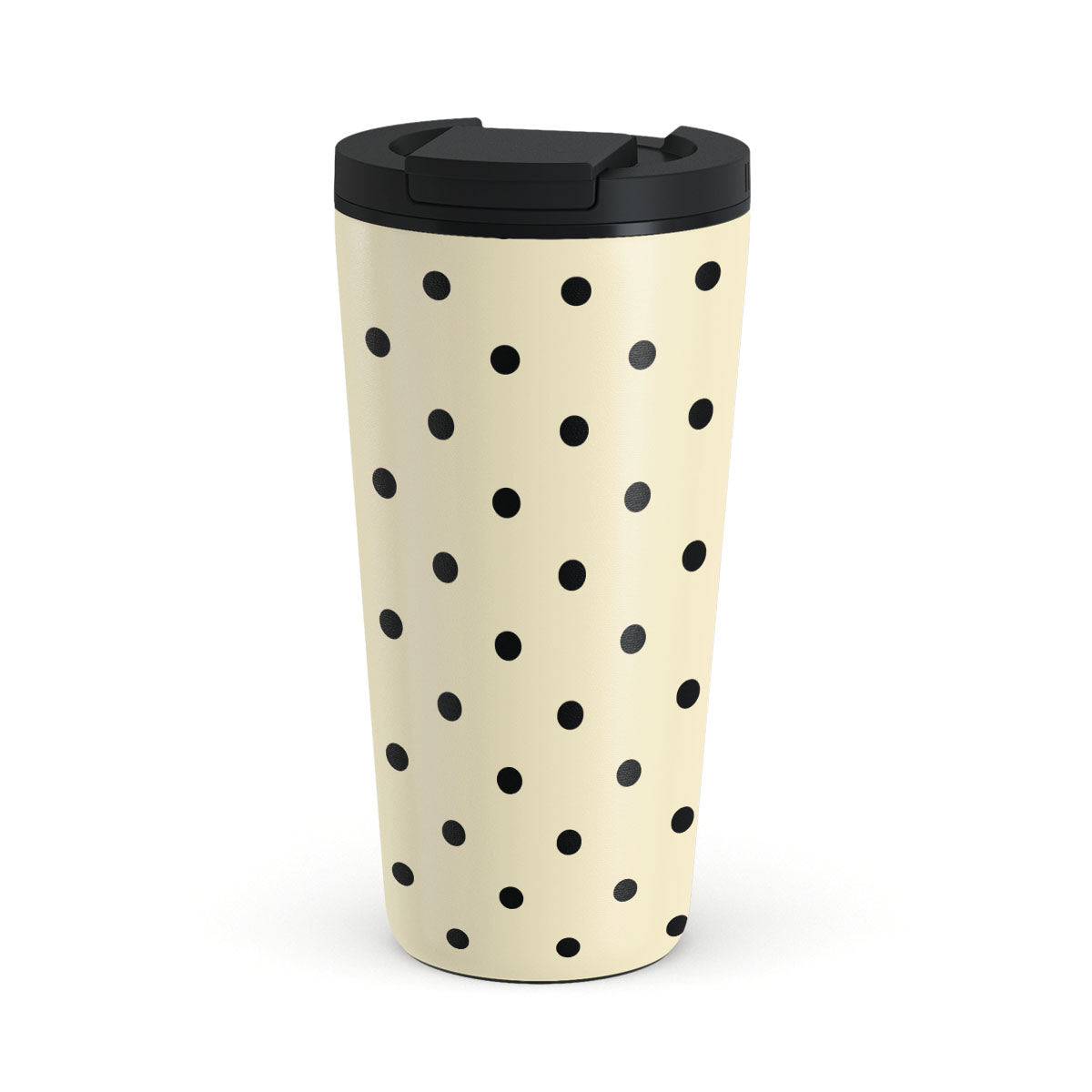 このデザインの特徴:黒の小さな水玉模様が入ったベージュの背景が特徴です。