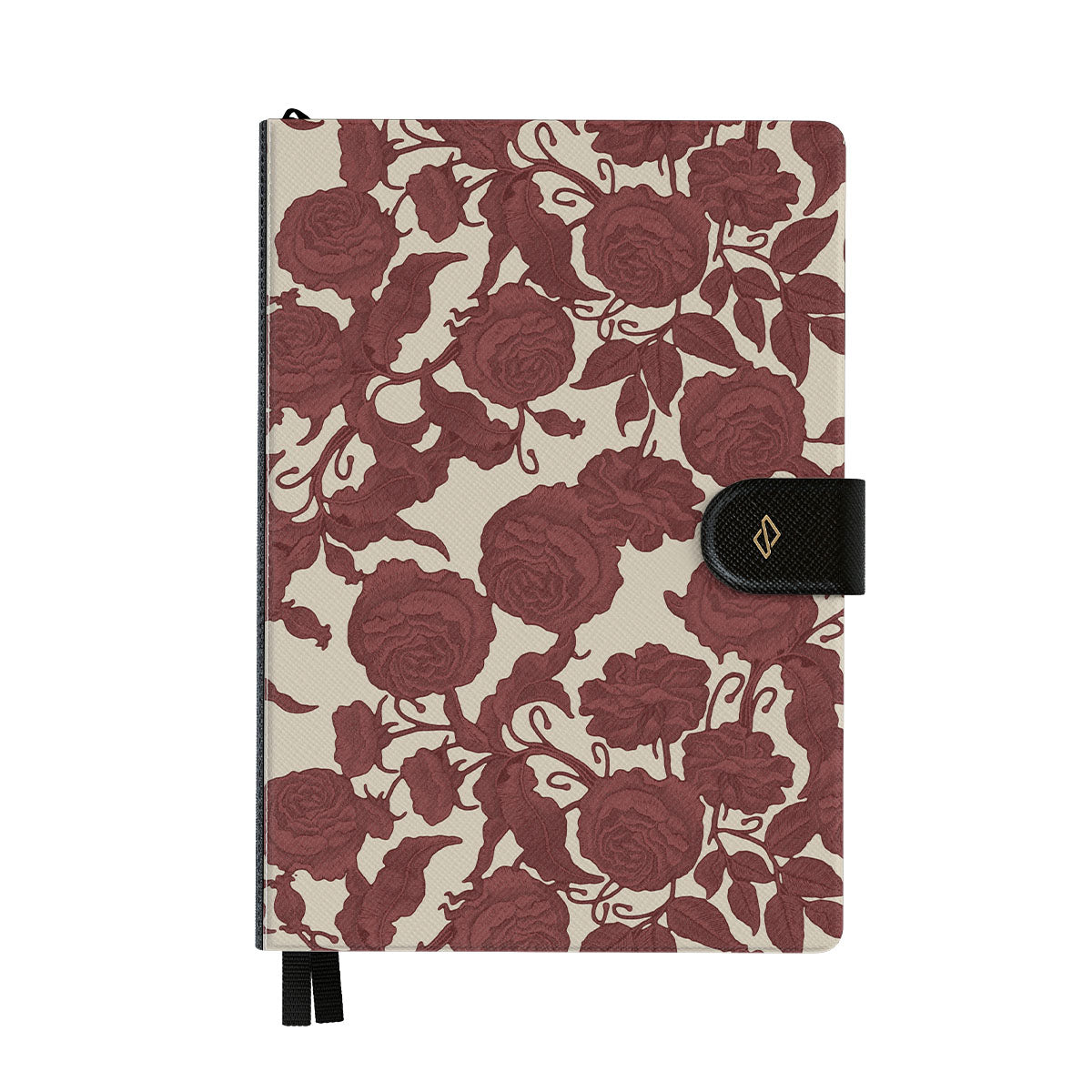 日付が書かれていないミニマリストなデザインで、手帳・スケジュール帳・ダイアリーとして使えます。表紙のハードカバーには、心地よい手触りのヴィーガンサフィアーノレザーを使用。スリムな磁気べえると付きの頑丈な手帳で、コーヒーをこぼしたり、うっかり手帳を落としたりしても安心です。