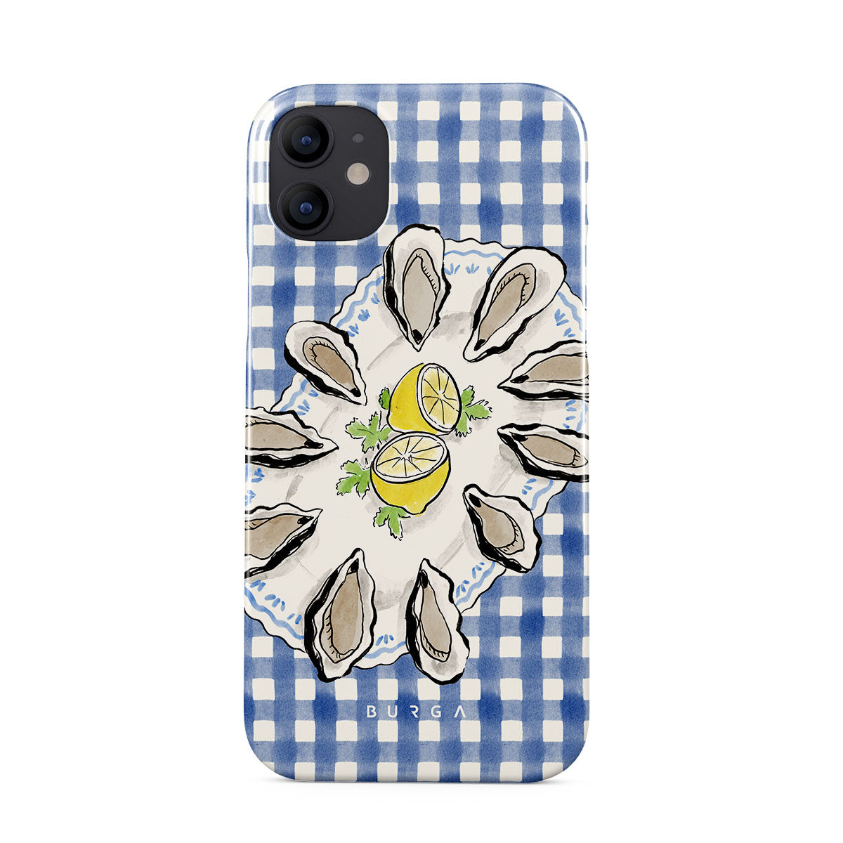 このデザインの特徴カキ、レモン、青いギンガム、フレッシュなコースタル要素、柔らかいパステルトーンが含まれています