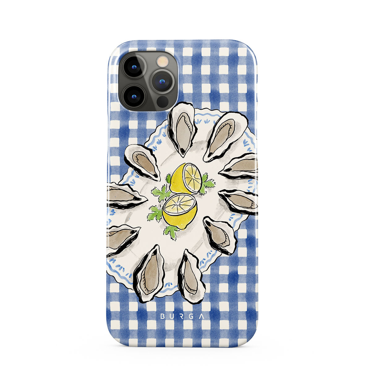 このデザインの特徴カキ、レモン、青いギンガム、フレッシュなコースタル要素、柔らかいパステルトーンが含まれています