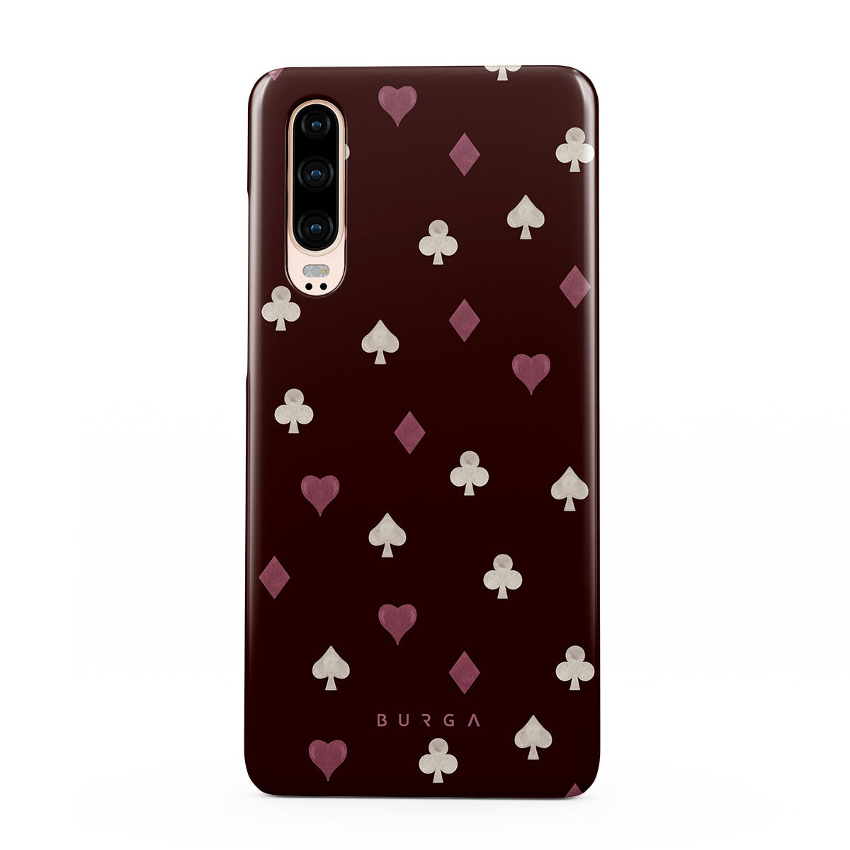 このデザインの特徴トランプのスート(ハート、スペード、ダイヤ、クラブ)、ボルドー色の背景