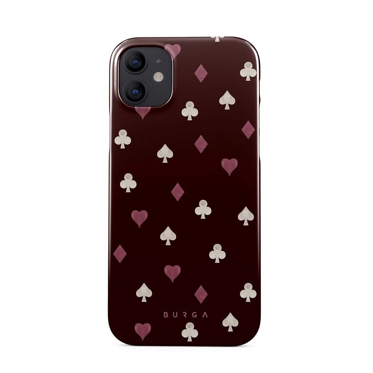 このデザインの特徴トランプのスート(ハート、スペード、ダイヤ、クラブ)、ボルドー色の背景