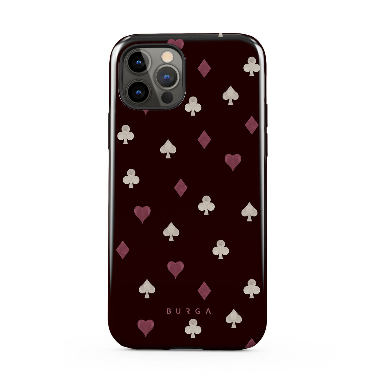 このデザインの特徴トランプのスート(ハート、スペード、ダイヤ、クラブ)、ボルドー色の背景