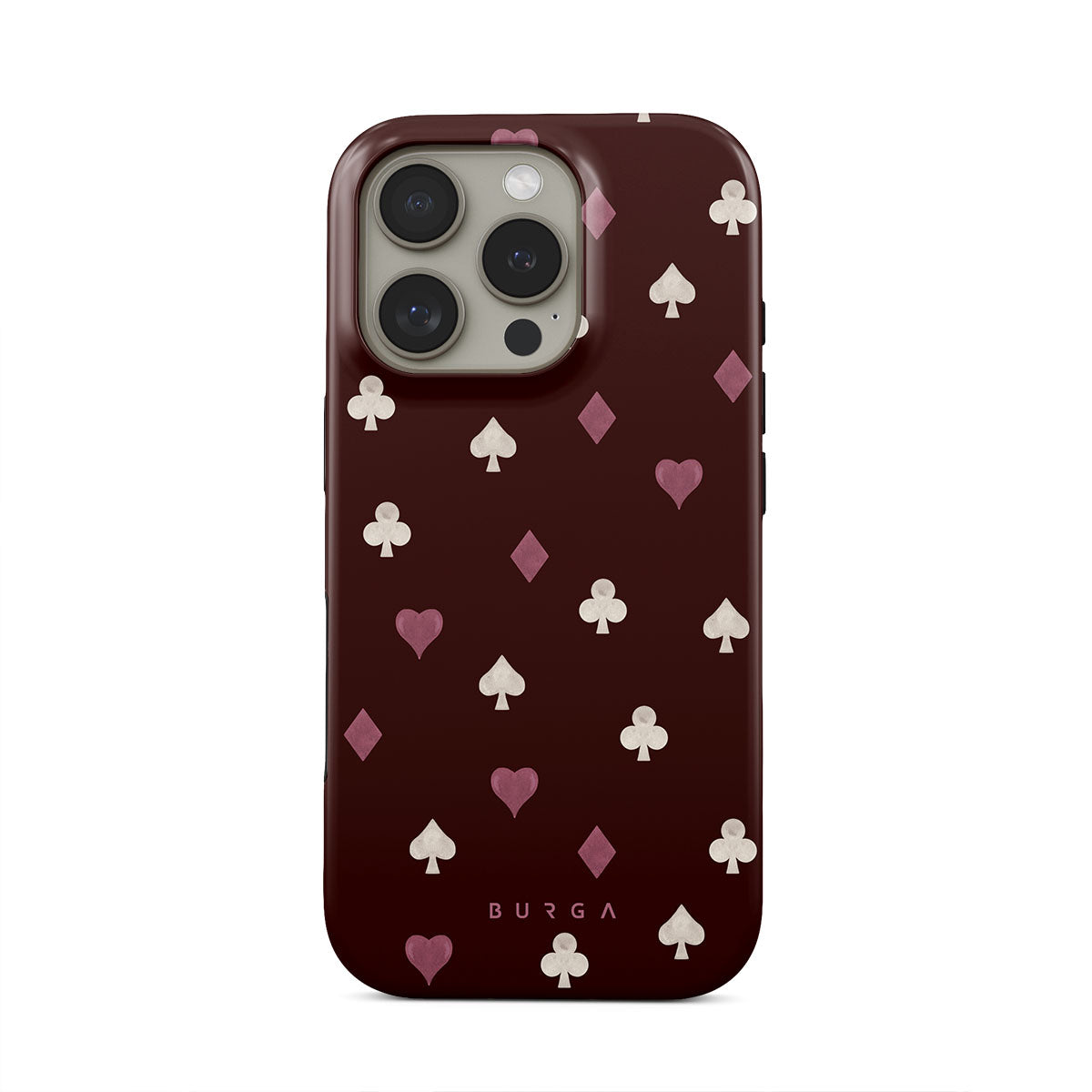 このデザインの特徴トランプのスート(ハート、スペード、ダイヤ、クラブ)、ボルドー色の背景