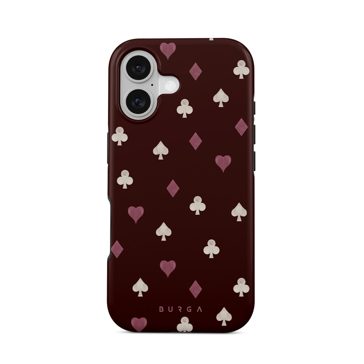 このデザインの特徴トランプのスート(ハート、スペード、ダイヤ、クラブ)、ボルドー色の背景