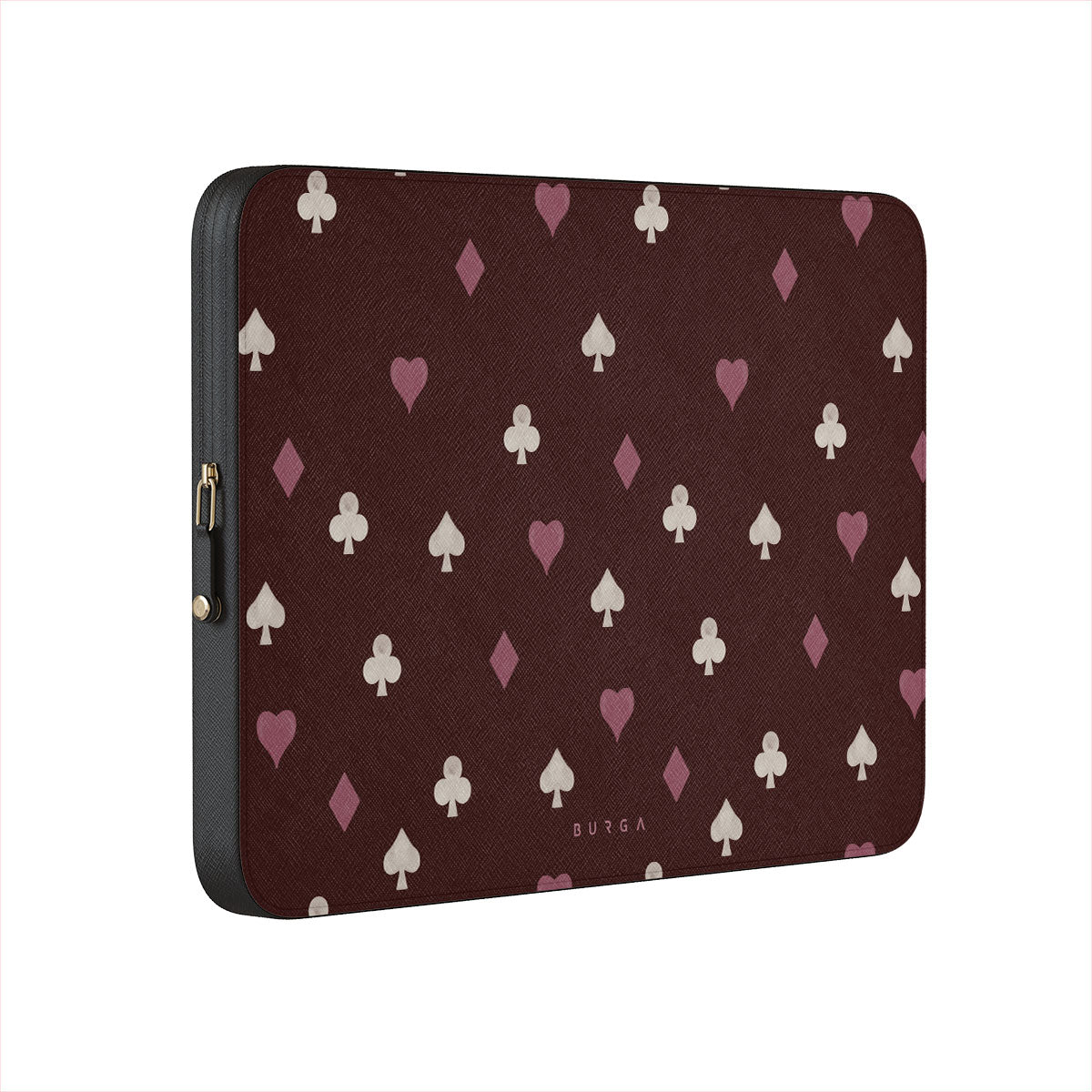 このデザインの特徴トランプのスート(ハート、スペード、ダイヤ、クラブ)、ボルドー色の背景