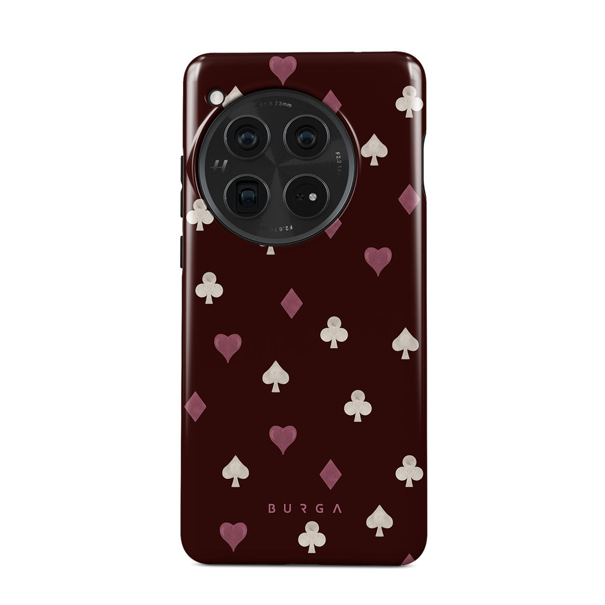 このデザインの特徴トランプのスート(ハート、スペード、ダイヤ、クラブ)、ボルドー色の背景