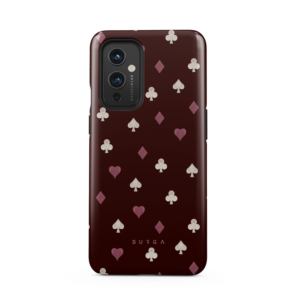 このデザインの特徴トランプのスート(ハート、スペード、ダイヤ、クラブ)、ボルドー色の背景