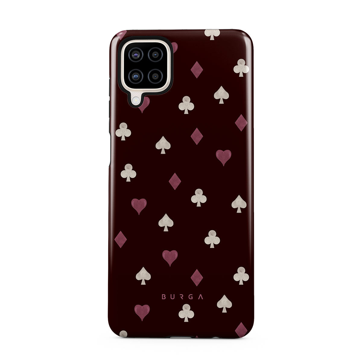 このデザインの特徴トランプのスート(ハート、スペード、ダイヤ、クラブ)、ボルドー色の背景