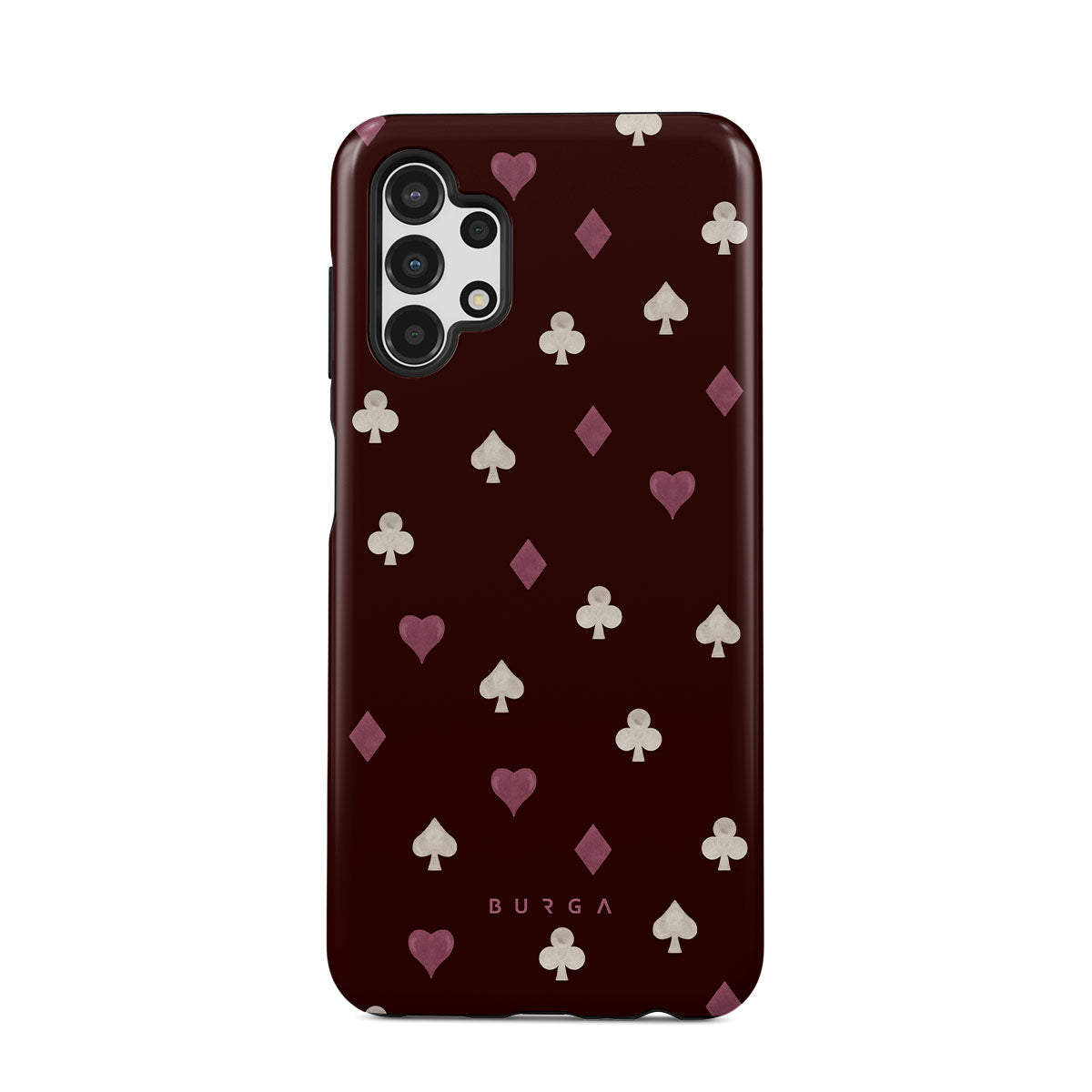 このデザインの特徴トランプのスート(ハート、スペード、ダイヤ、クラブ)、ボルドー色の背景