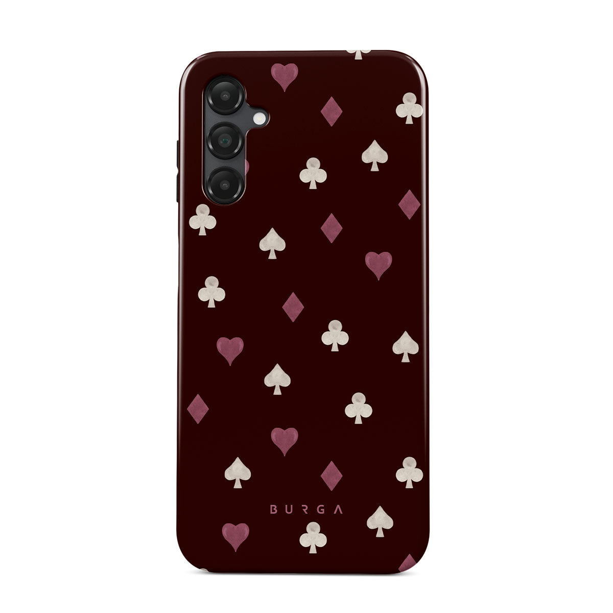 このデザインの特徴トランプのスート(ハート、スペード、ダイヤ、クラブ)、ボルドー色の背景