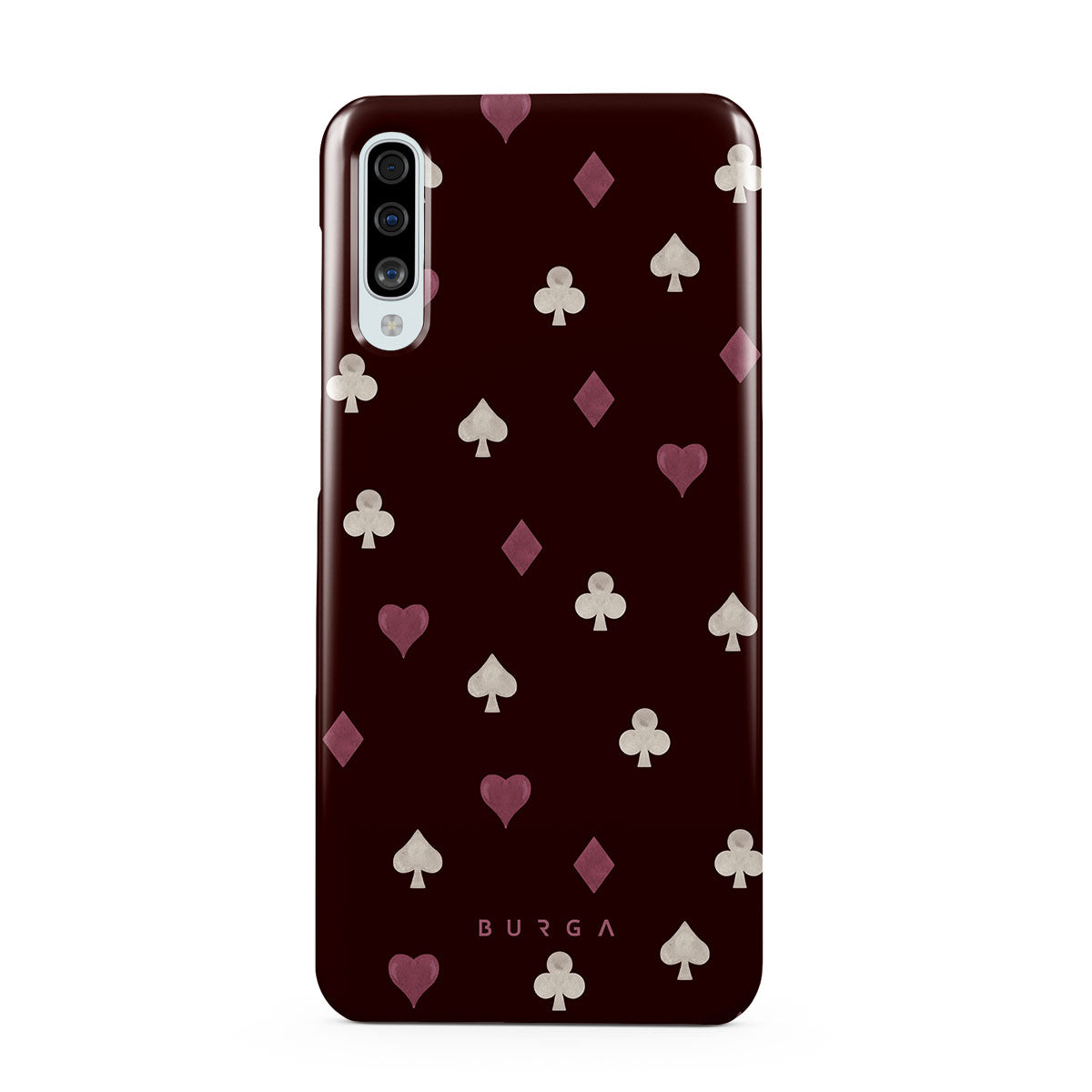 このデザインの特徴トランプのスート(ハート、スペード、ダイヤ、クラブ)、ボルドー色の背景