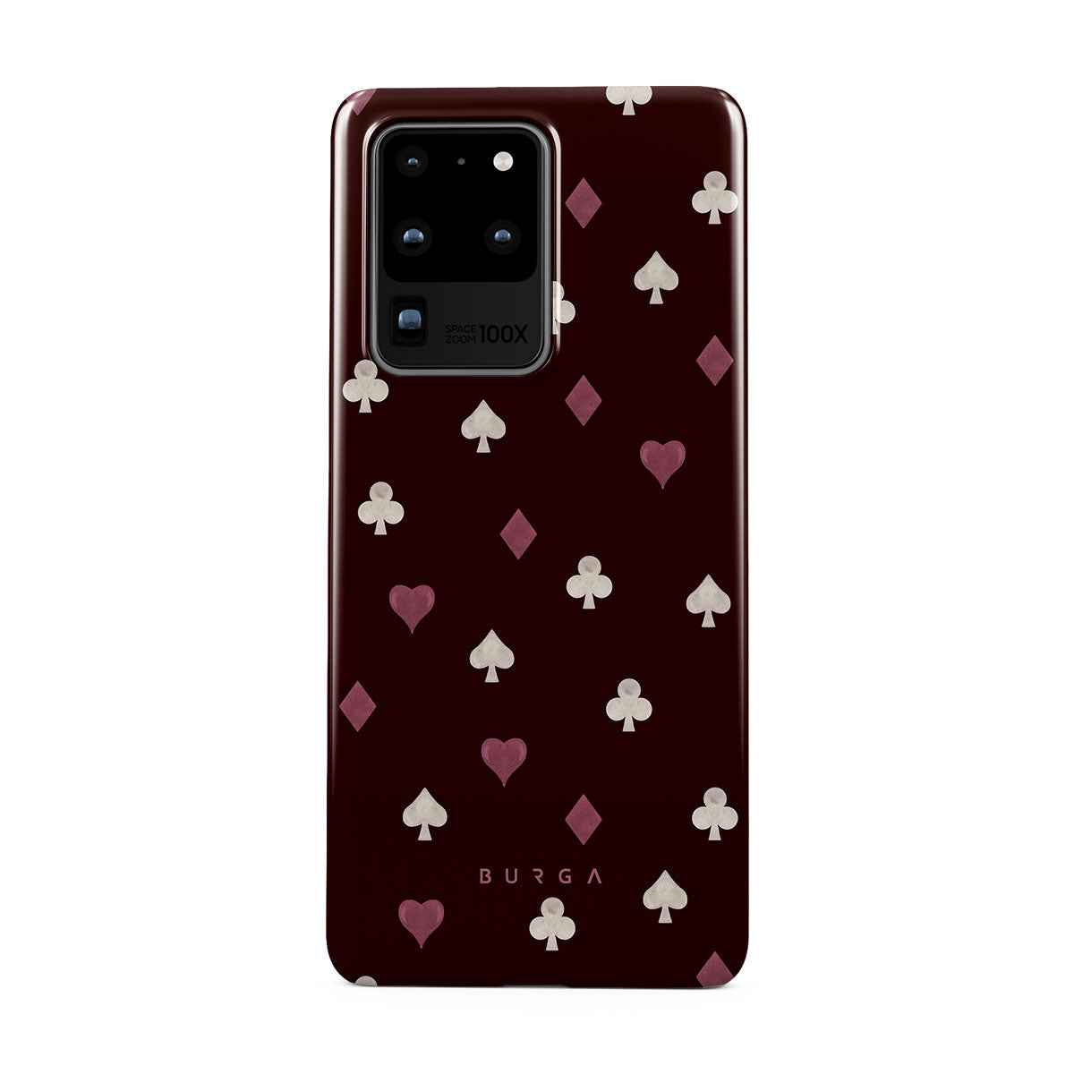 このデザインの特徴トランプのスート(ハート、スペード、ダイヤ、クラブ)、ボルドー色の背景