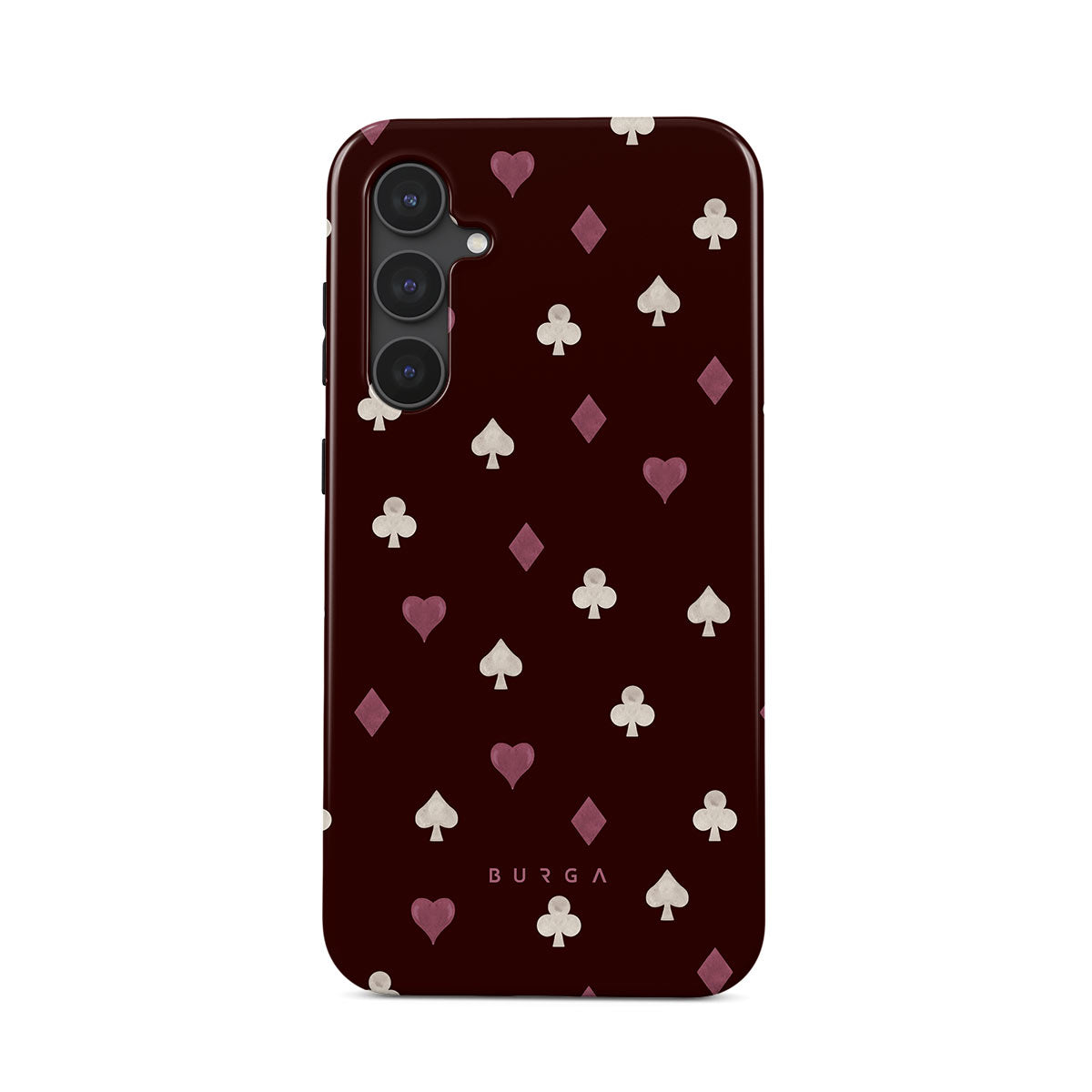 このデザインの特徴トランプのスート(ハート、スペード、ダイヤ、クラブ)、ボルドー色の背景