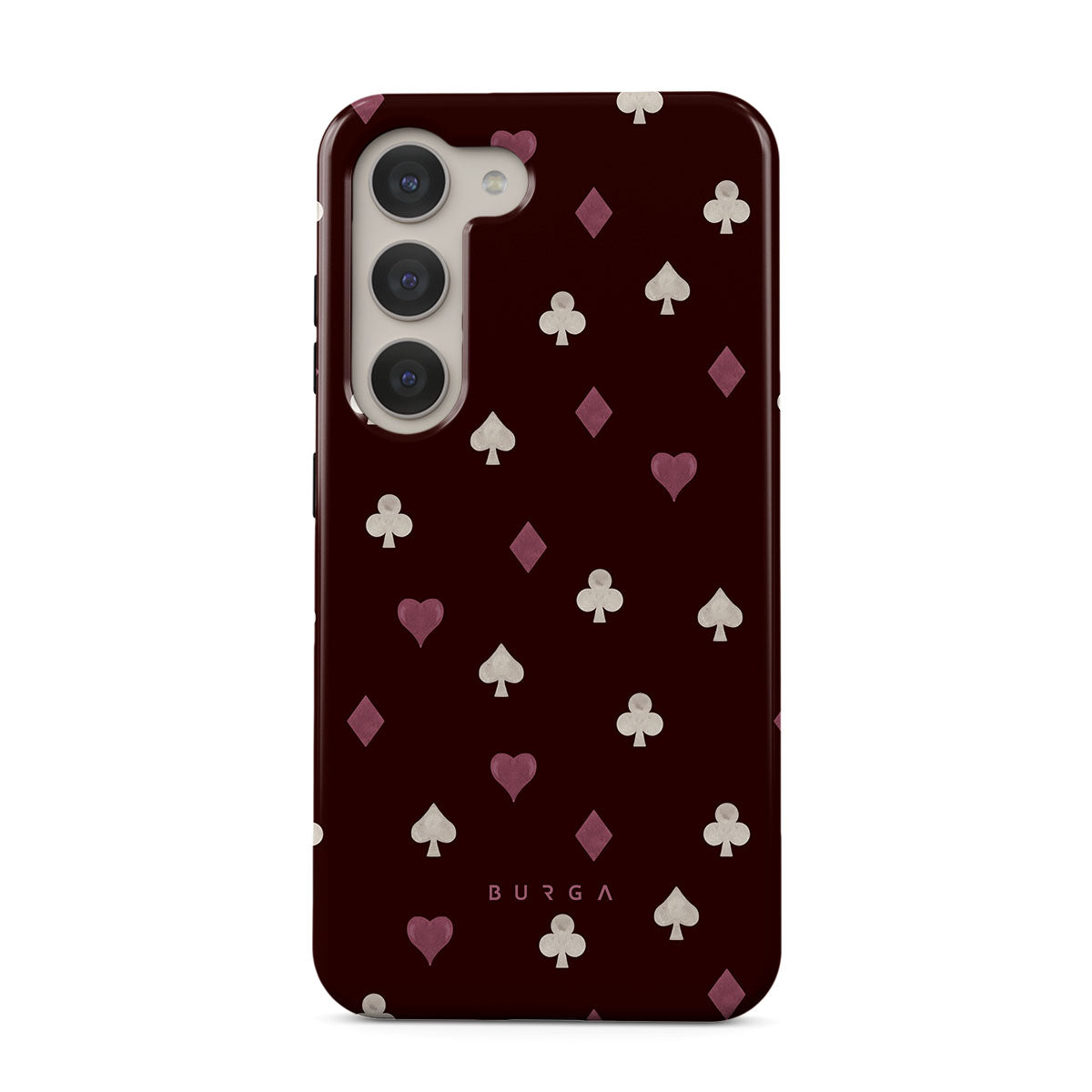 このデザインの特徴トランプのスート(ハート、スペード、ダイヤ、クラブ)、ボルドー色の背景