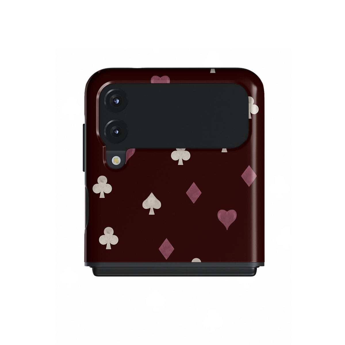 このデザインの特徴トランプのスート(ハート、スペード、ダイヤ、クラブ)、ボルドー色の背景