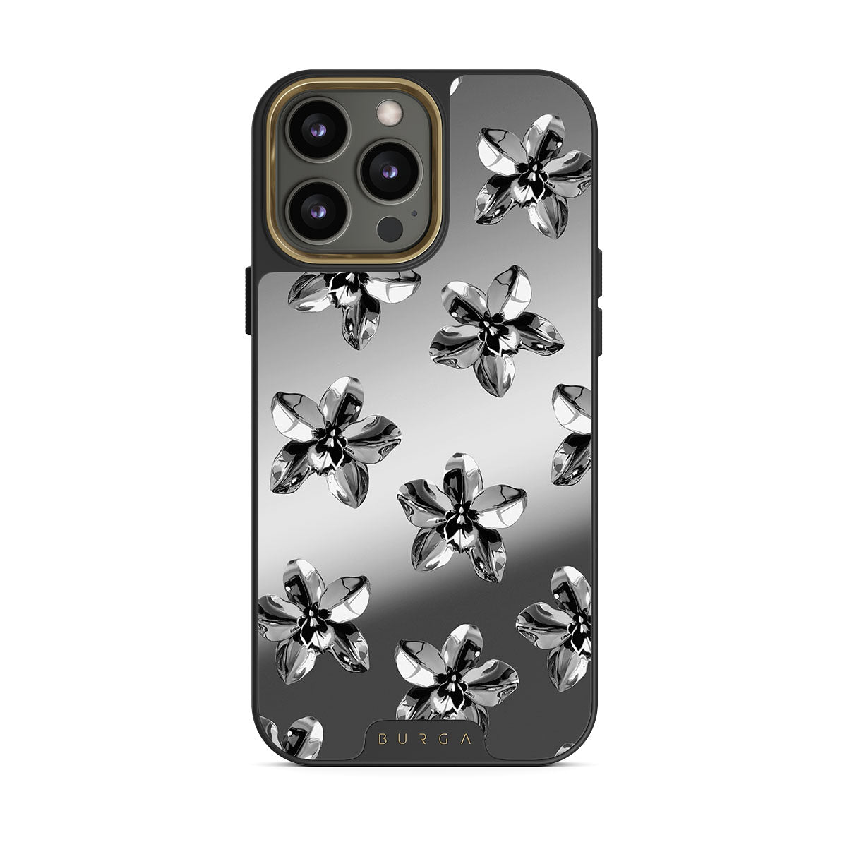 このデザインの特徴銀の花、メタリックなディテール、ミラーが含まれています